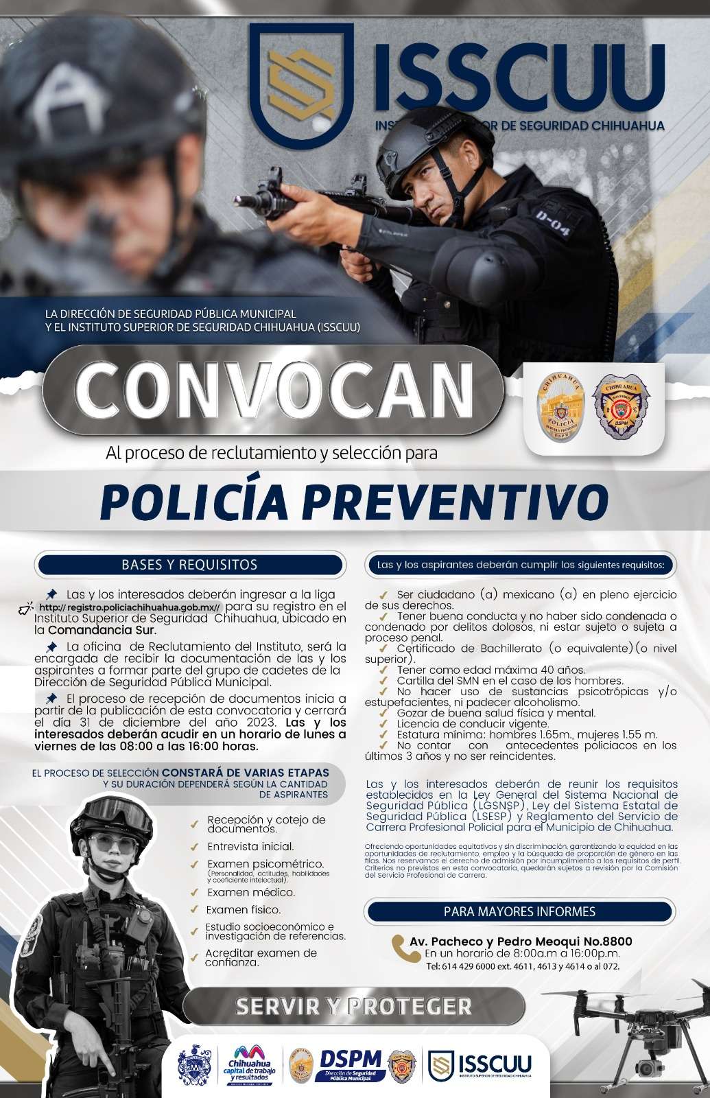 Conoce los requisitos e inscríbete en el proceso de selección en la liga: http://registro.policiachihuahua.gob.mx