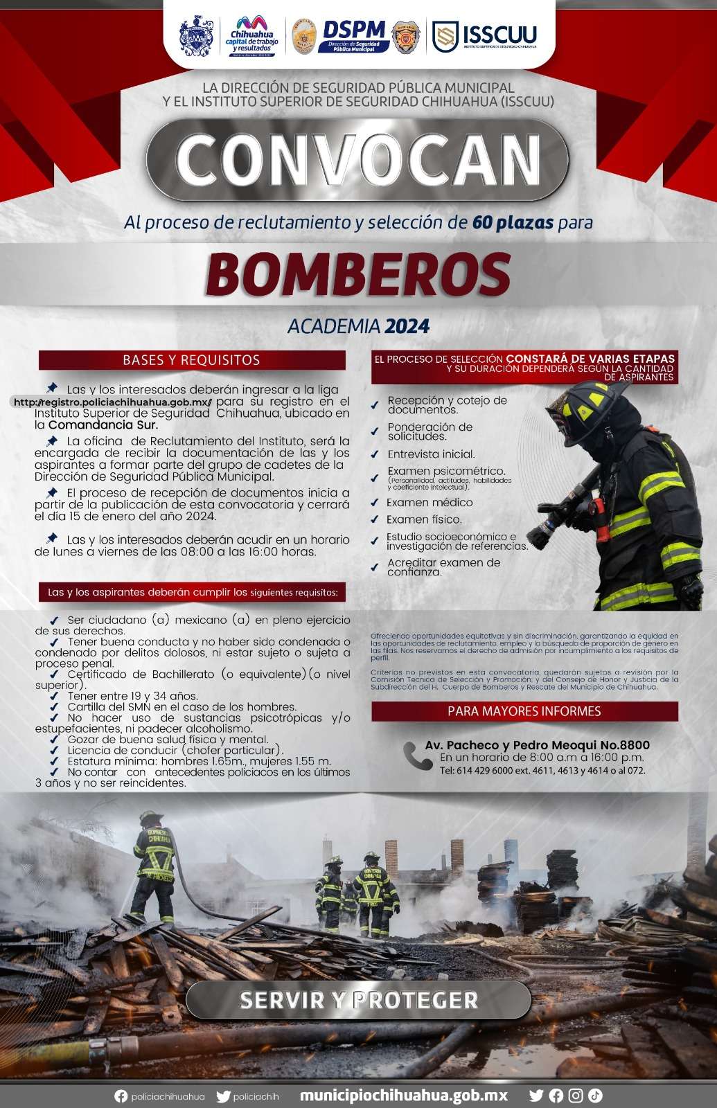 Chihuahua, Chih.- El Gobierno Municipal abrió la convocatoria para unirse a las filas de la de la Dirección de Seguridad Pública Municipal (DSPM), para ser policía preventivo o bombero.