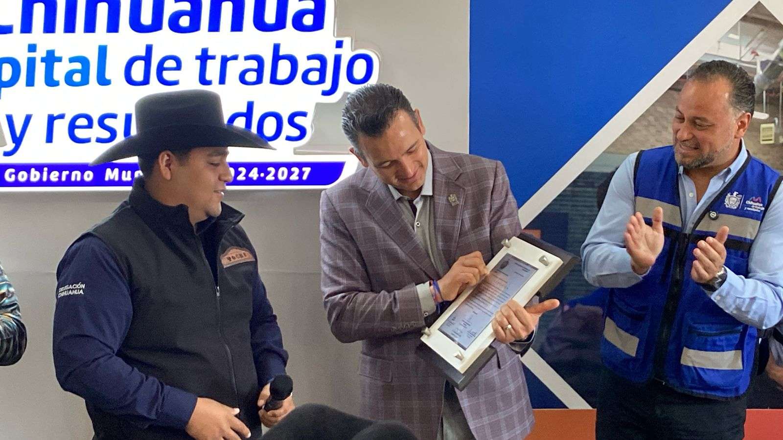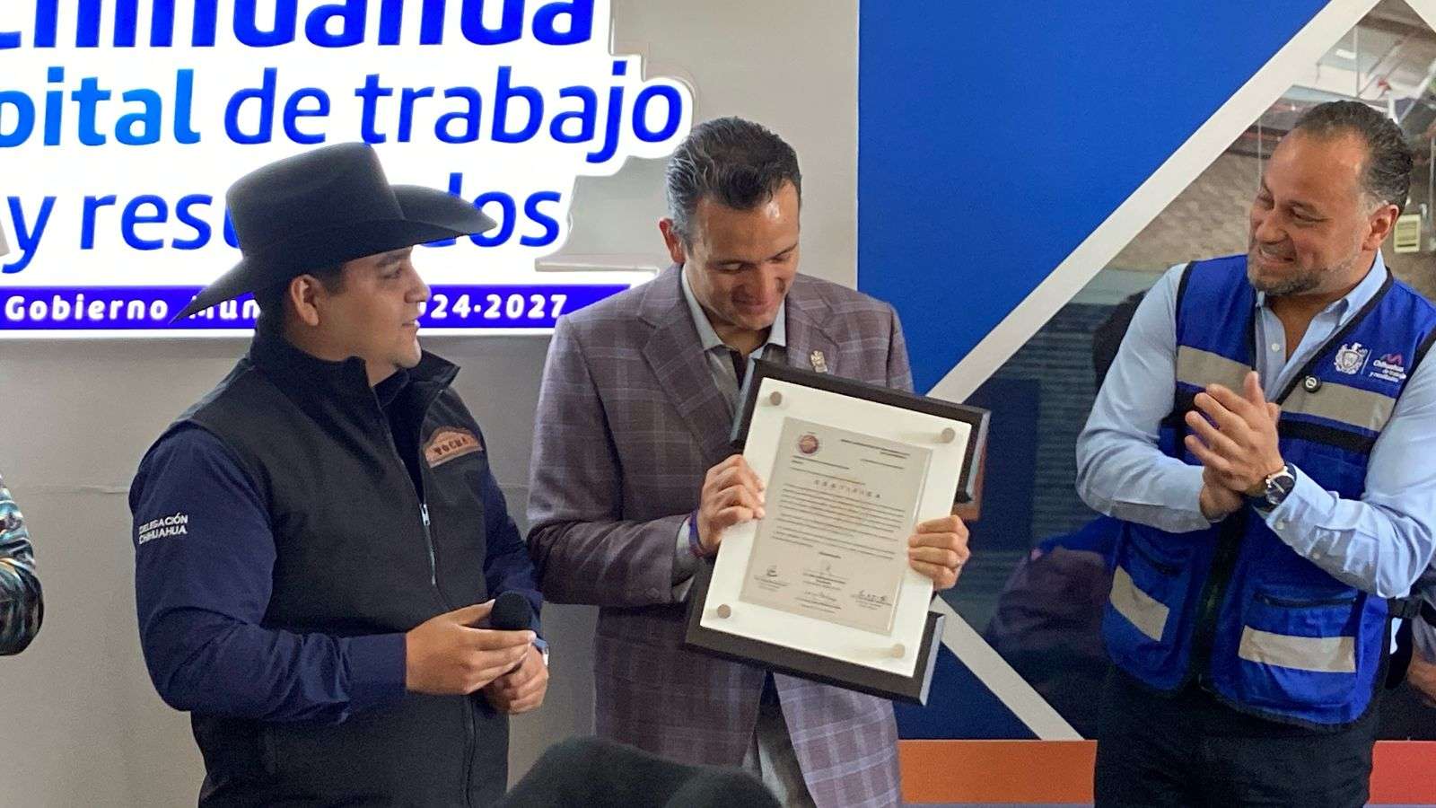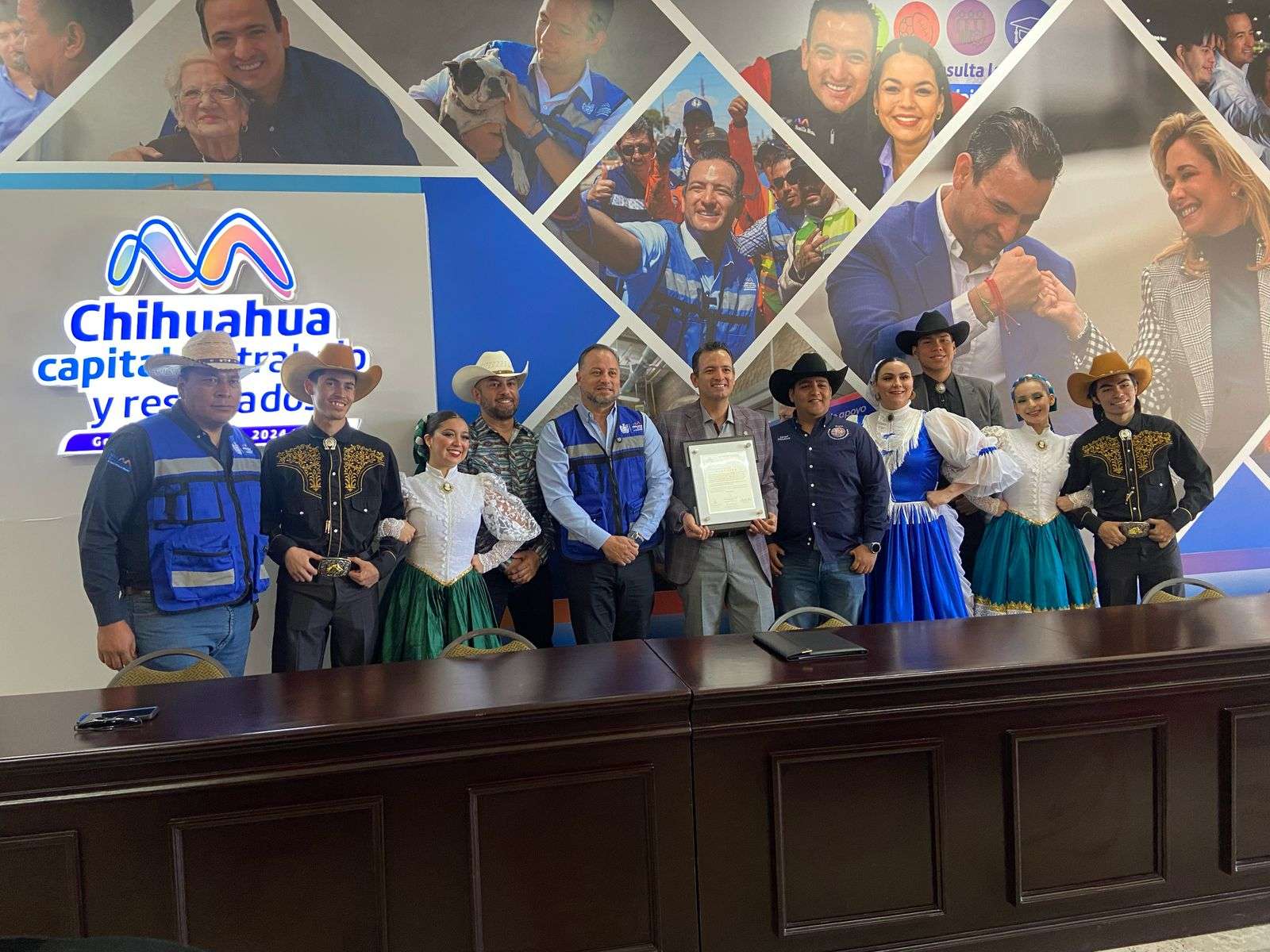 En el presidium estuvieron presentes Paola Georgina Acosta participante de la Polka, Carlos Daniel Rodríguez Castañeda Subdirector de Educación en Desarrollo Humano y Educación, Marco Antonio Bonilla alcalde de Chihuahua, Eduardo García Director de Desarrollo Humano y César Orta maestro homenajeado de los 4 pilares de la danza.