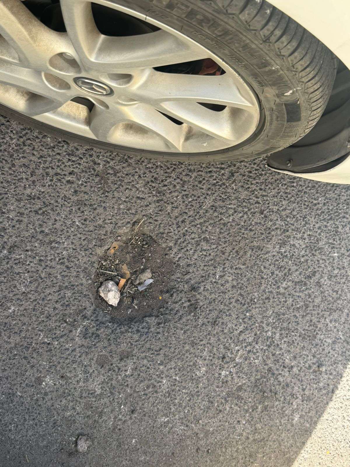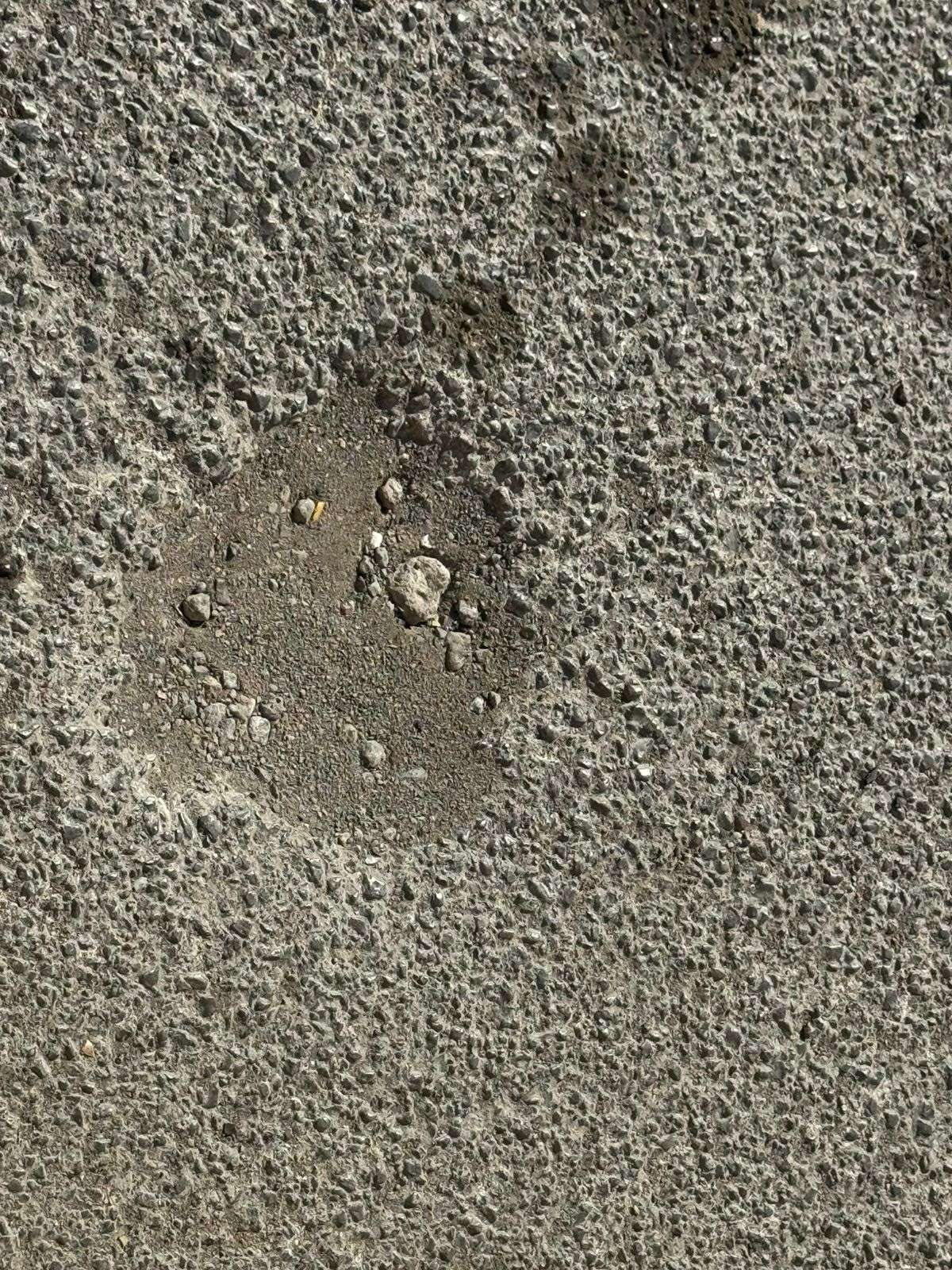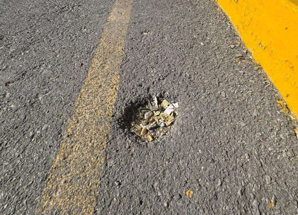 Los más de sesenta hoyos en el asfalto se mantienen ahí, como galletas de animalitos, detenidos en el tiempo y en el espacio, como si esperaran el accidente ideal.