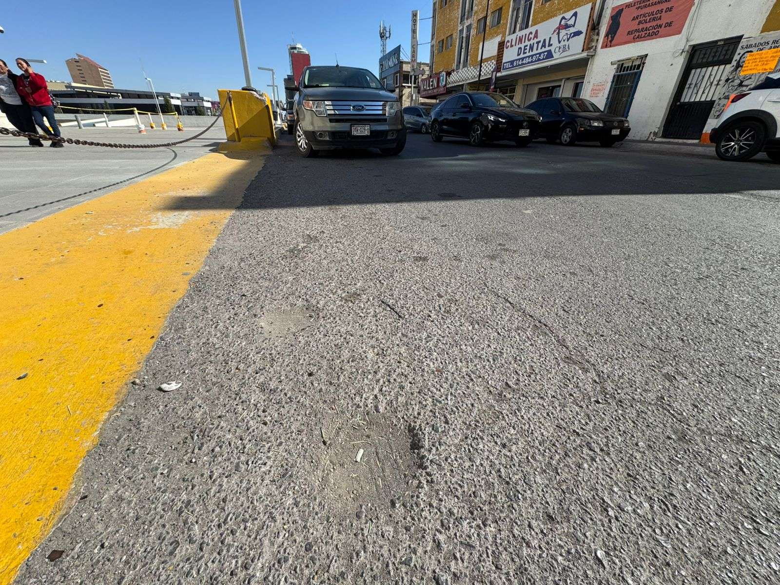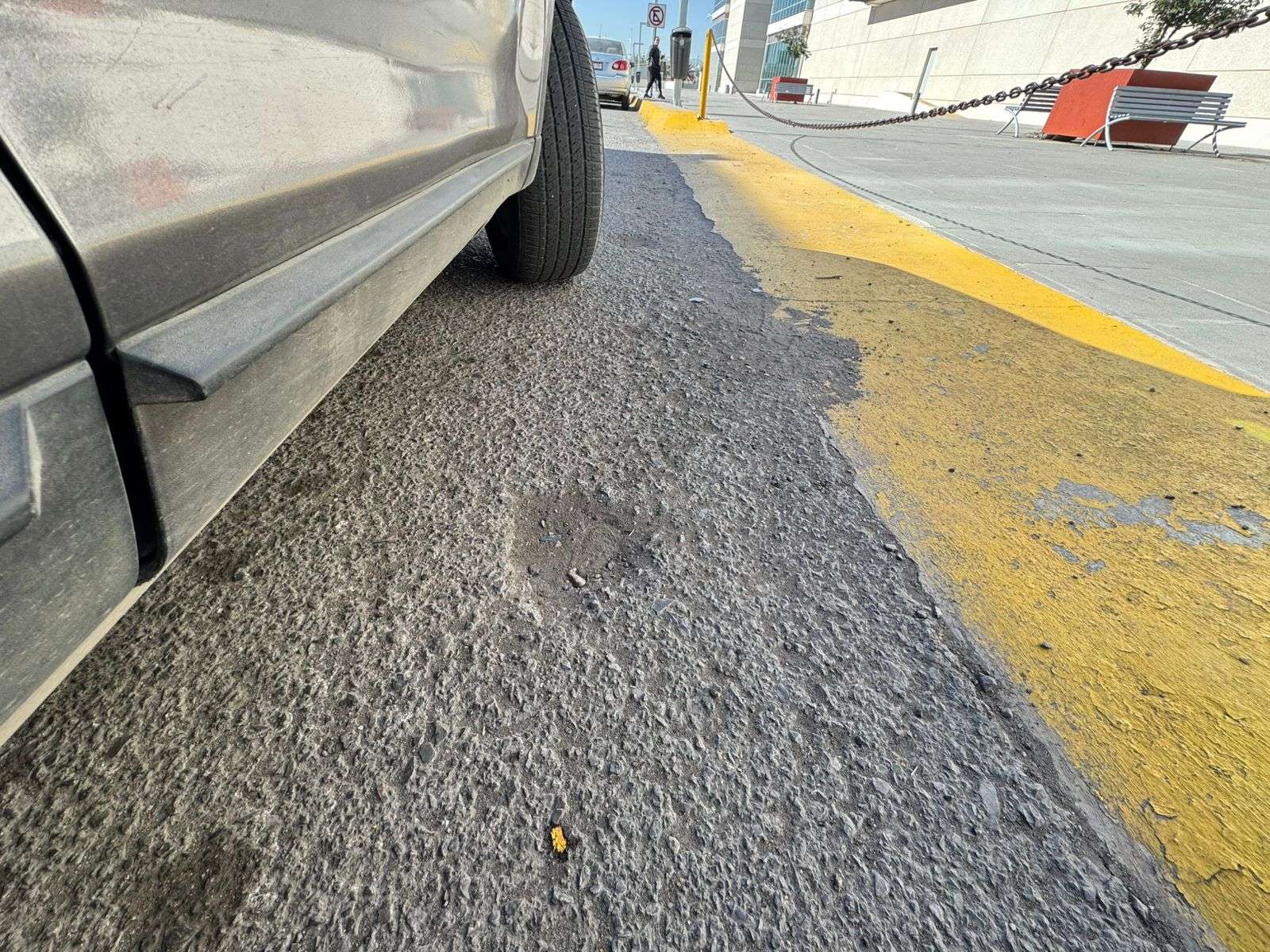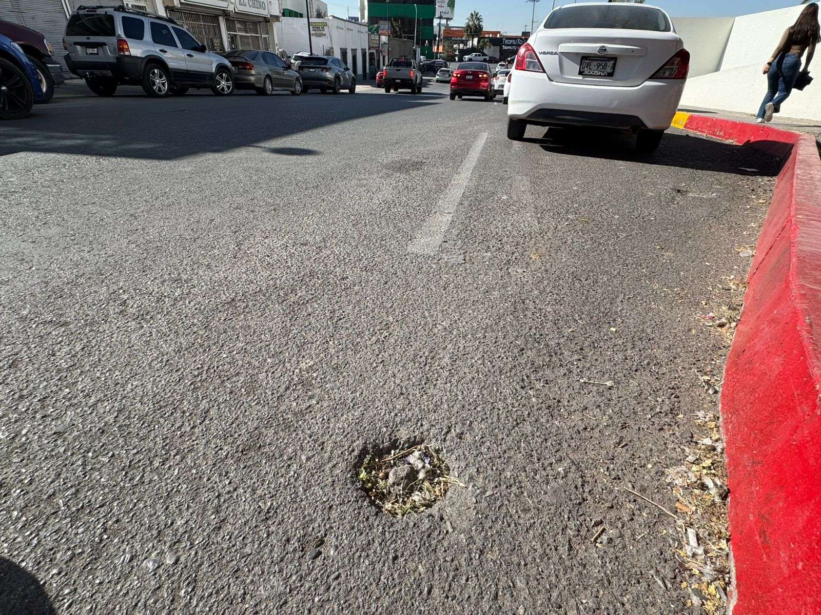 Algunos vecinos alertaron a las mujeres que usan tacones altos y que se dirigen hacia los estacionamientos para tener cuidado porque un tropezón o caída podría originarles heridas.
