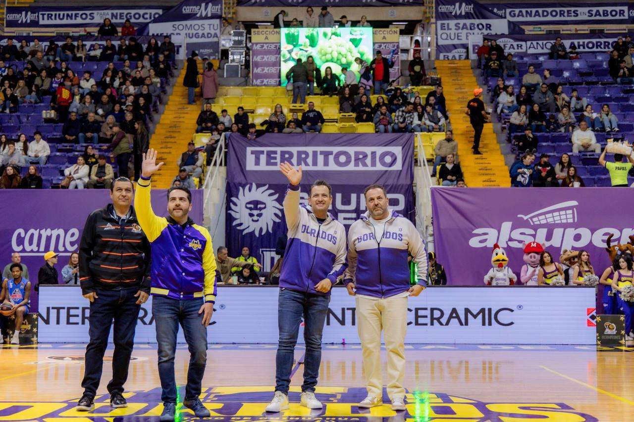 Chihuahua. – El alcalde Marco Bonilla dio el primer lanzamiento en el Campeonato Estatal de Basquetbol desde la línea de tiros de castigo, apoyando a los Dorados de Chihuahua en la defensa de su título.