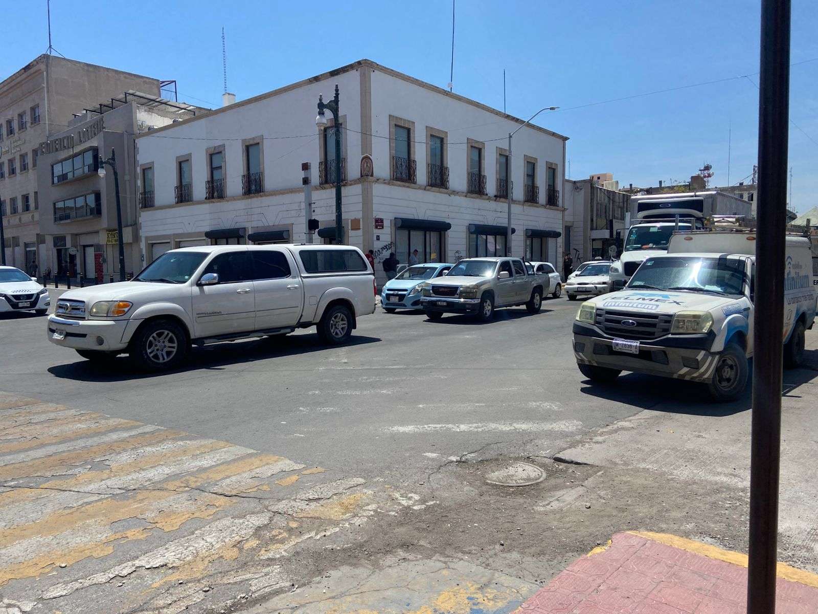 Las avenidas Juárez, Carranza y Aldama permanecieron cerradas, lo que generó un importante cuello de botella para quienes diariamente acuden a trabajar al centro de la ciudad.