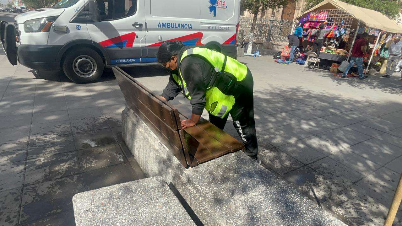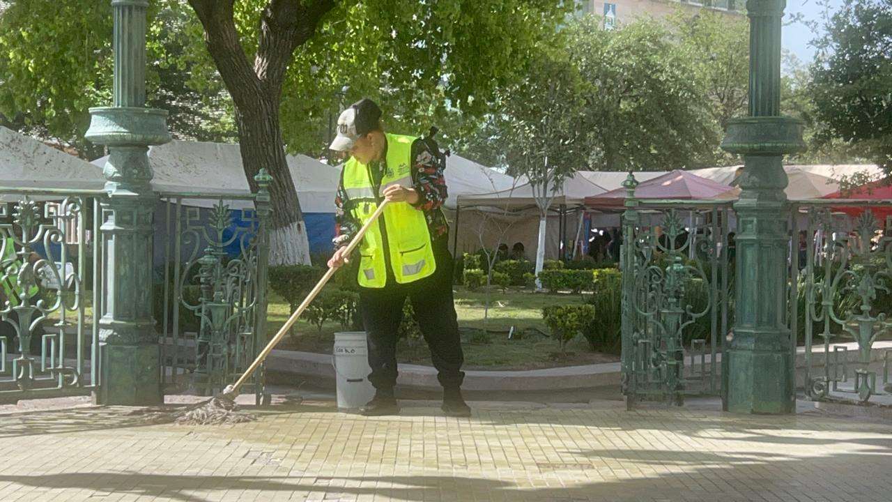 Chihuahua.- Personal del municipio de Chihuahua, realizó un operativo de limpieza en todo el primer cuadro de la ciudad.