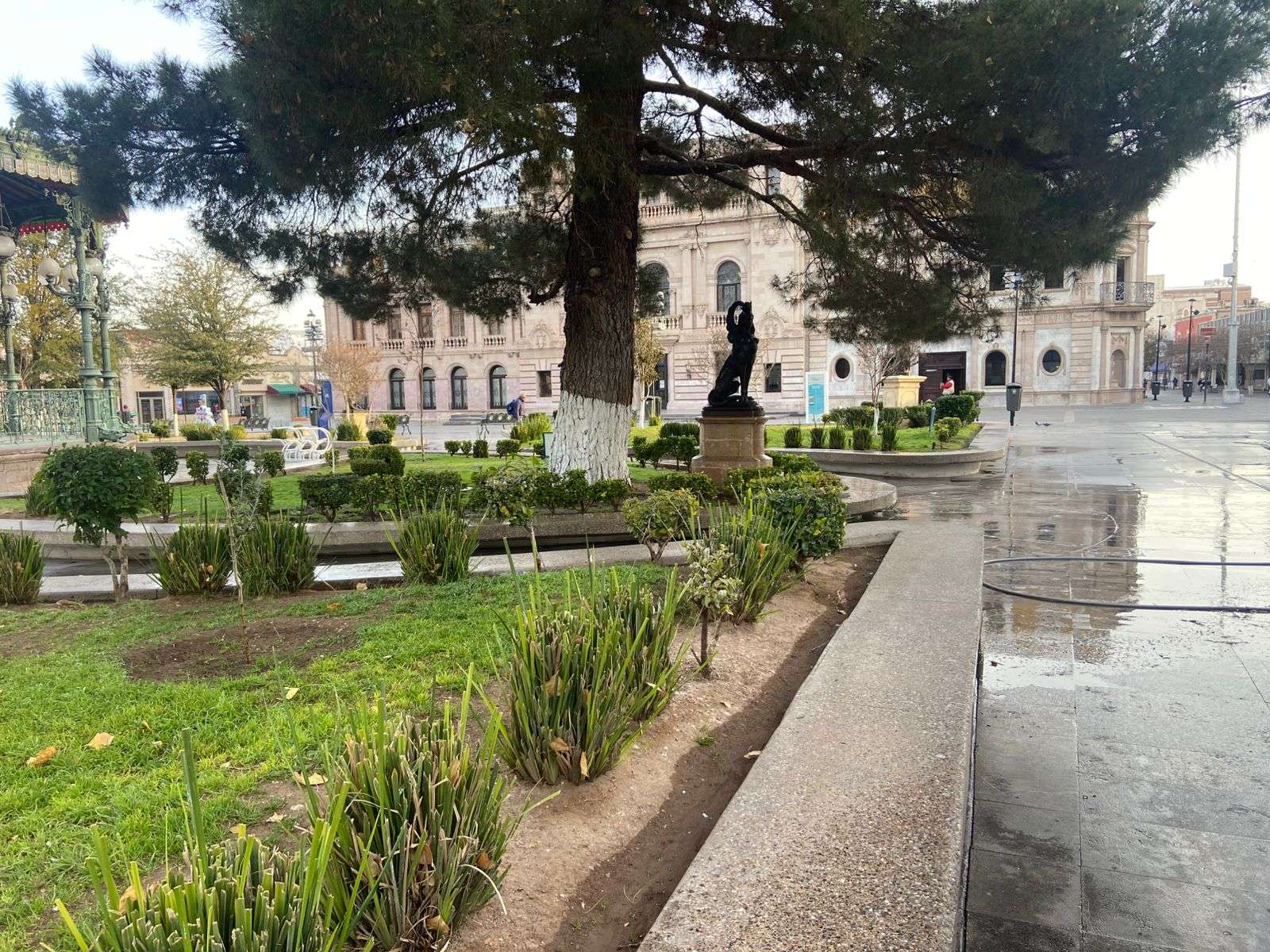 Desde temprana hora, los empleados municipales se dedicaron a lavar toda la plancha de adoquines que rodea la plaza, incluidas las áreas frente a la Catedral, garantizando así un espacio más limpio y agradable para visitantes y transeúntes.