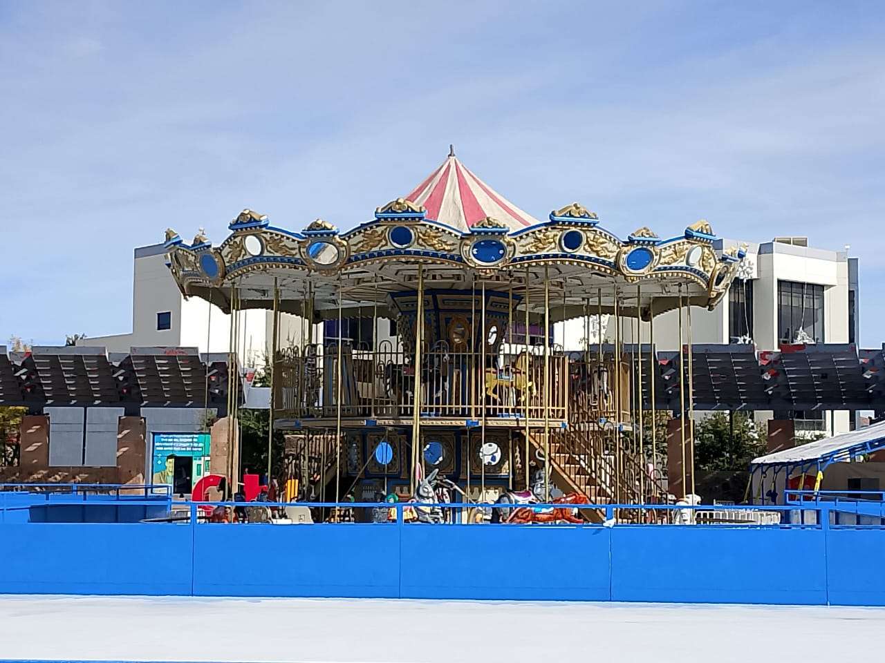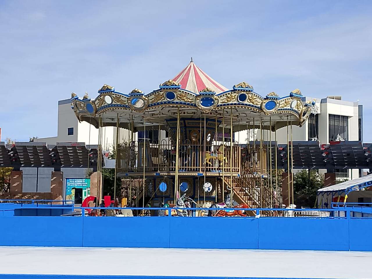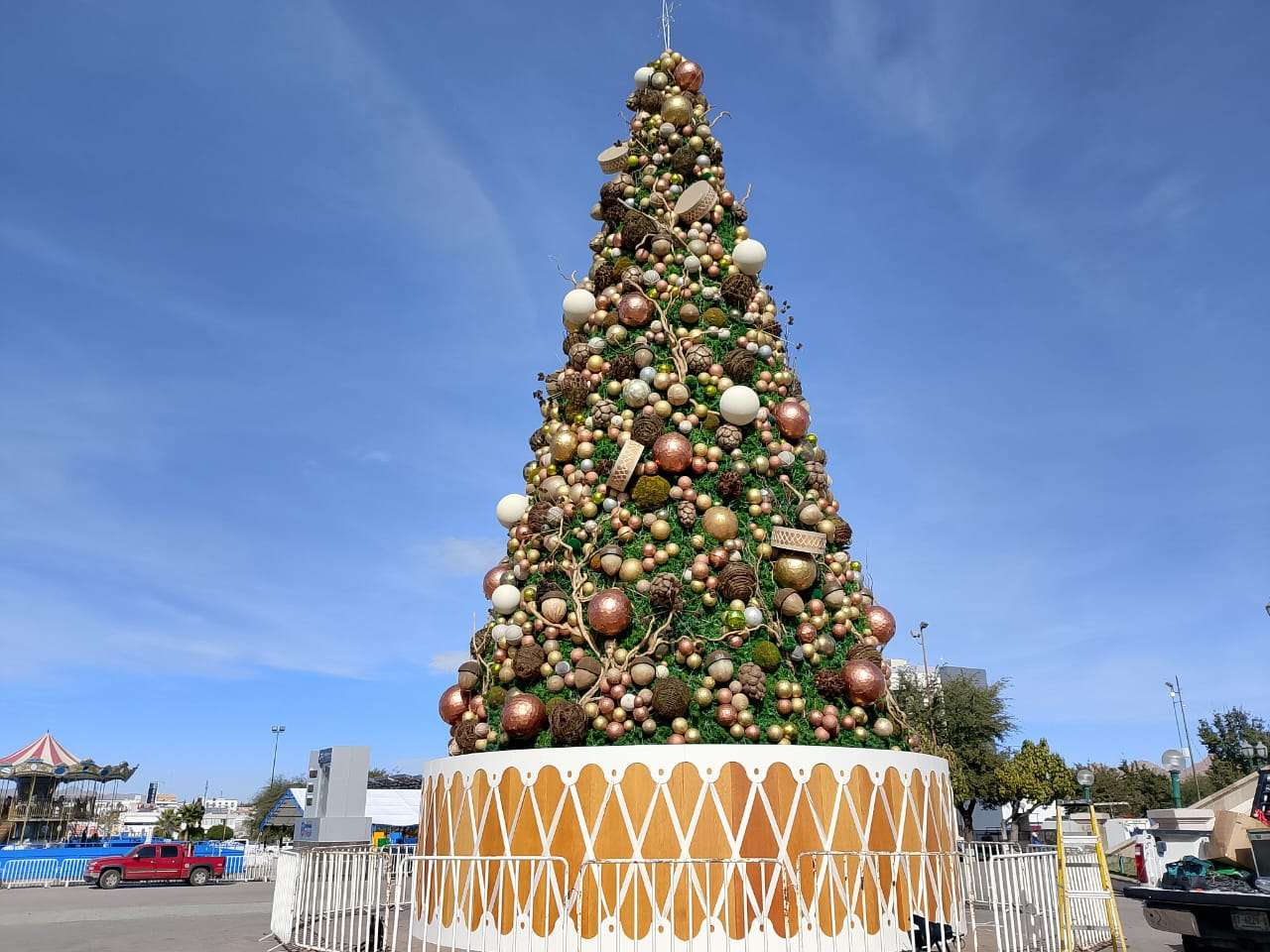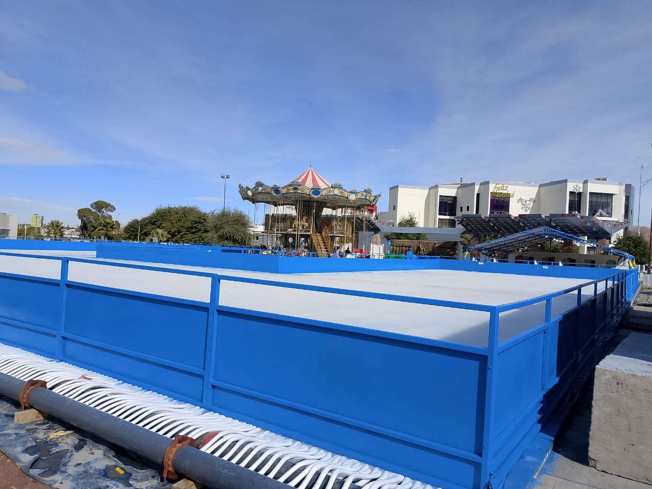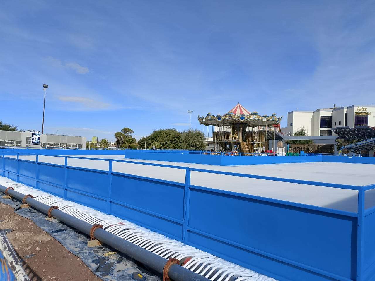 Chihuahua.- La pista de hielo Manitoba, el tradicional árbol navideño, el carrusel de dos pisos, el túnel de pino y el juego mecánico Torbellino Navideño quedaron instalados y listos para su apertura esta tarde en la Plaza del Ángel.