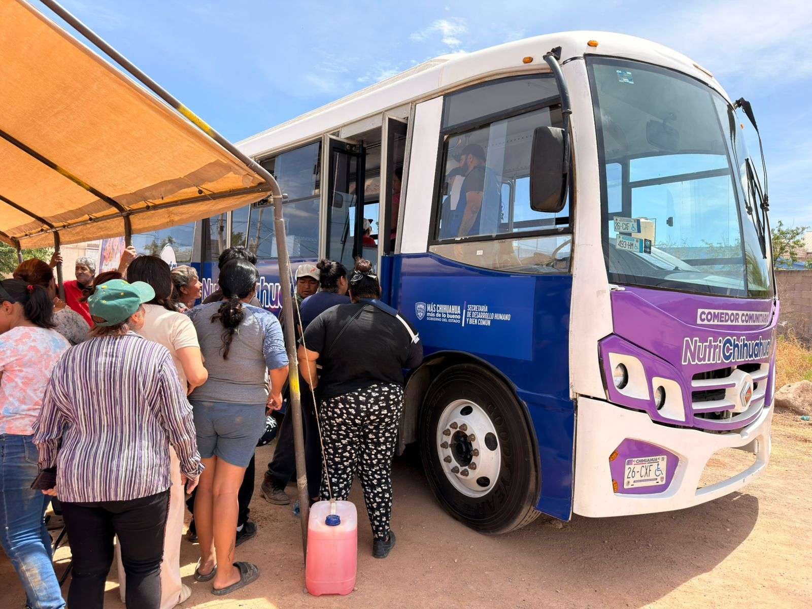 Chihuahua. - El Gobierno del Estado, a través de la Secretaría de Desarrollo Humano y Bien Común (SDHyBC), llevó el comedor móvil de NutriChihuahua a más colonias de la capital, para la distribución de platillos calientes a la población.