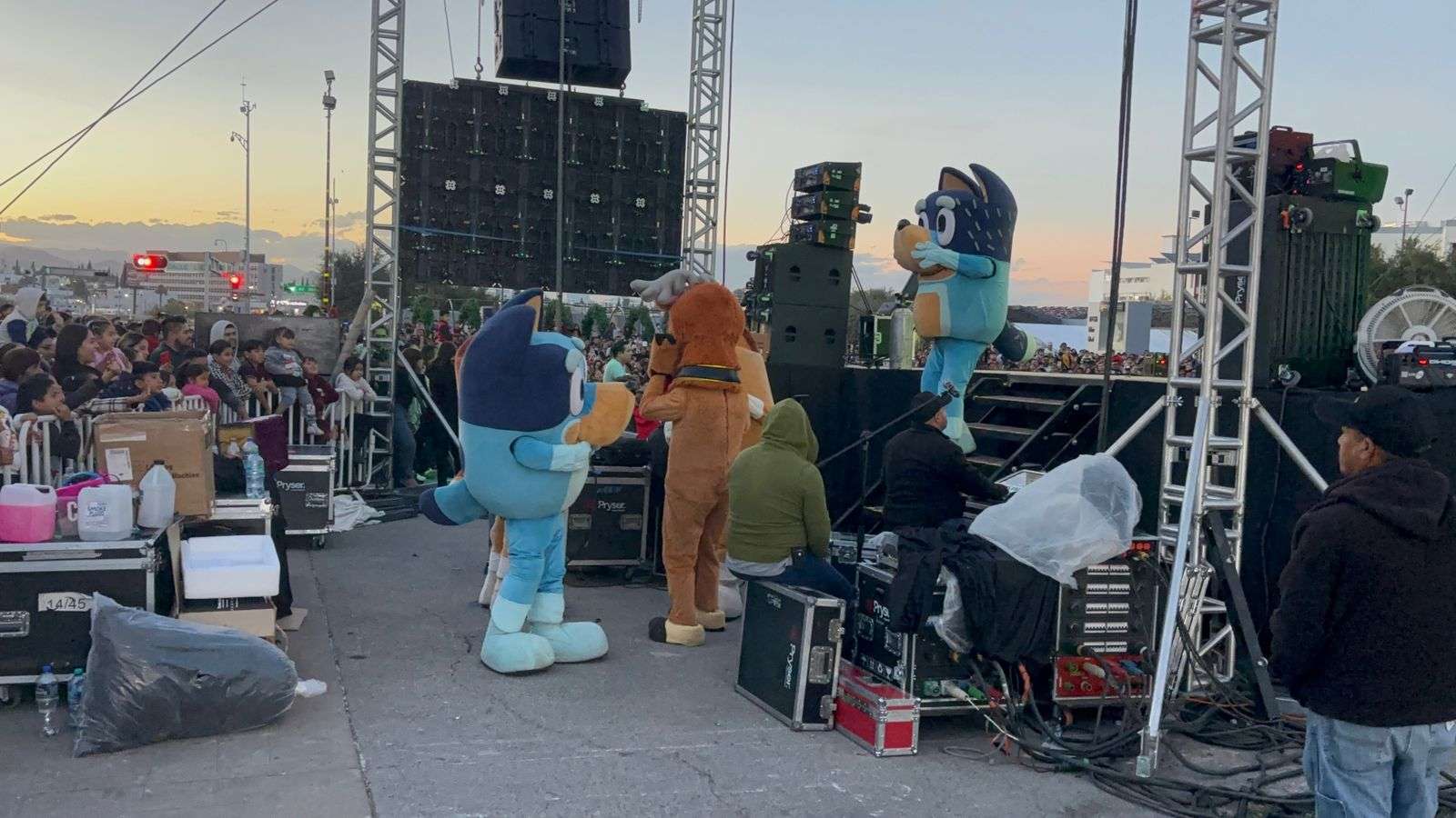 Chihuahua.- Un estimado de más de 4 mil personas arribaron al evento Navidad en Familia, en donde se presentó el show de Blue y Bingo en Busca de la Navidad, previo al encendido del Árbol Navideño, en la plaza Mayor.