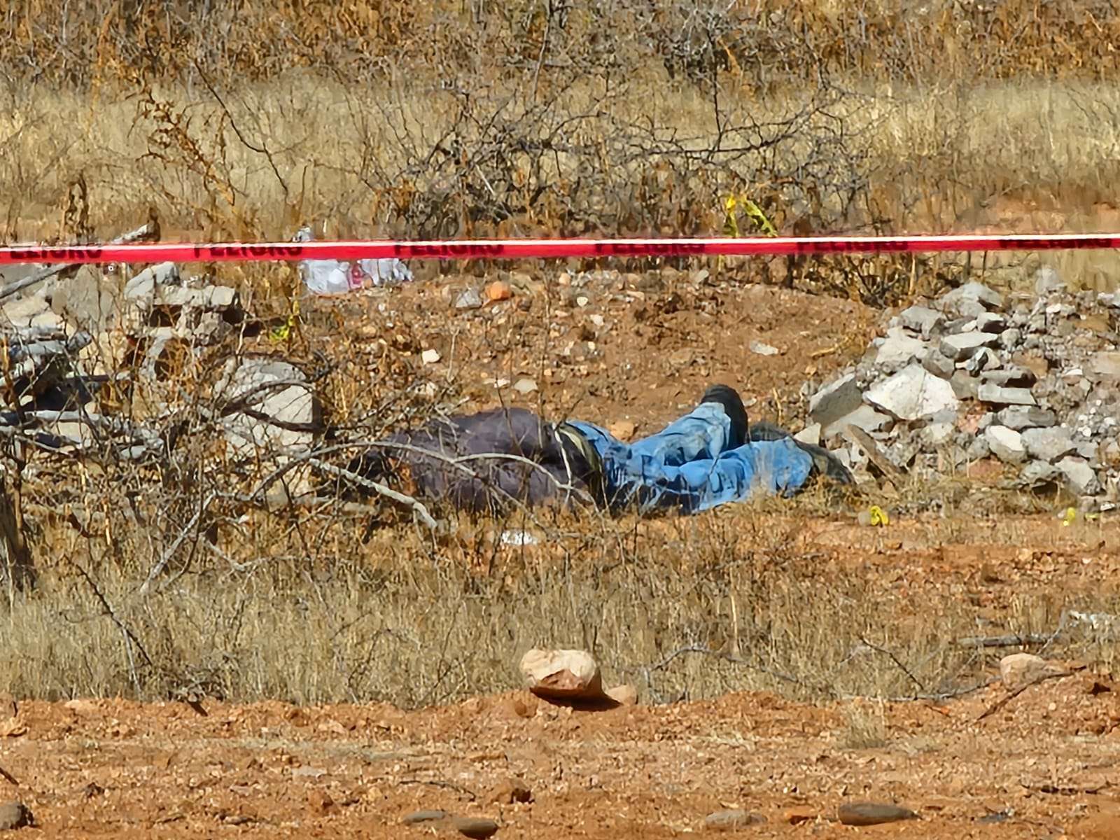 La víctima, de aproximadamente 45 años de edad, vestía una chamarra gris, pantalón de mezclilla azul y zapatos de trabajo negros, y fue encontrada boca abajo junto a unos escombros.