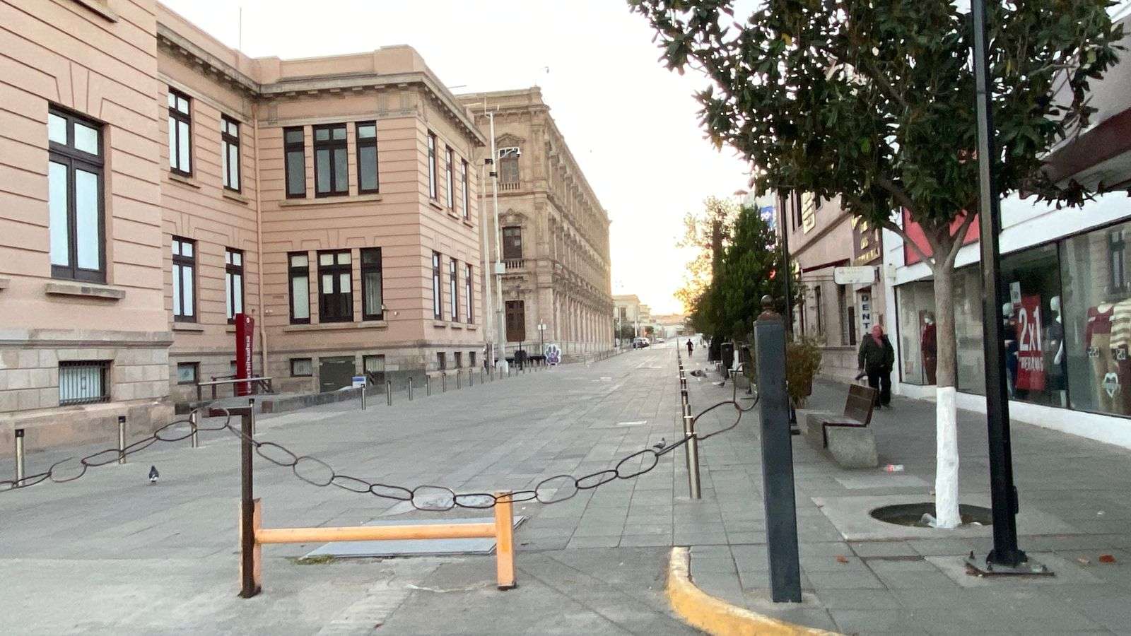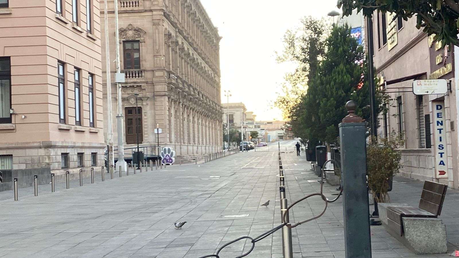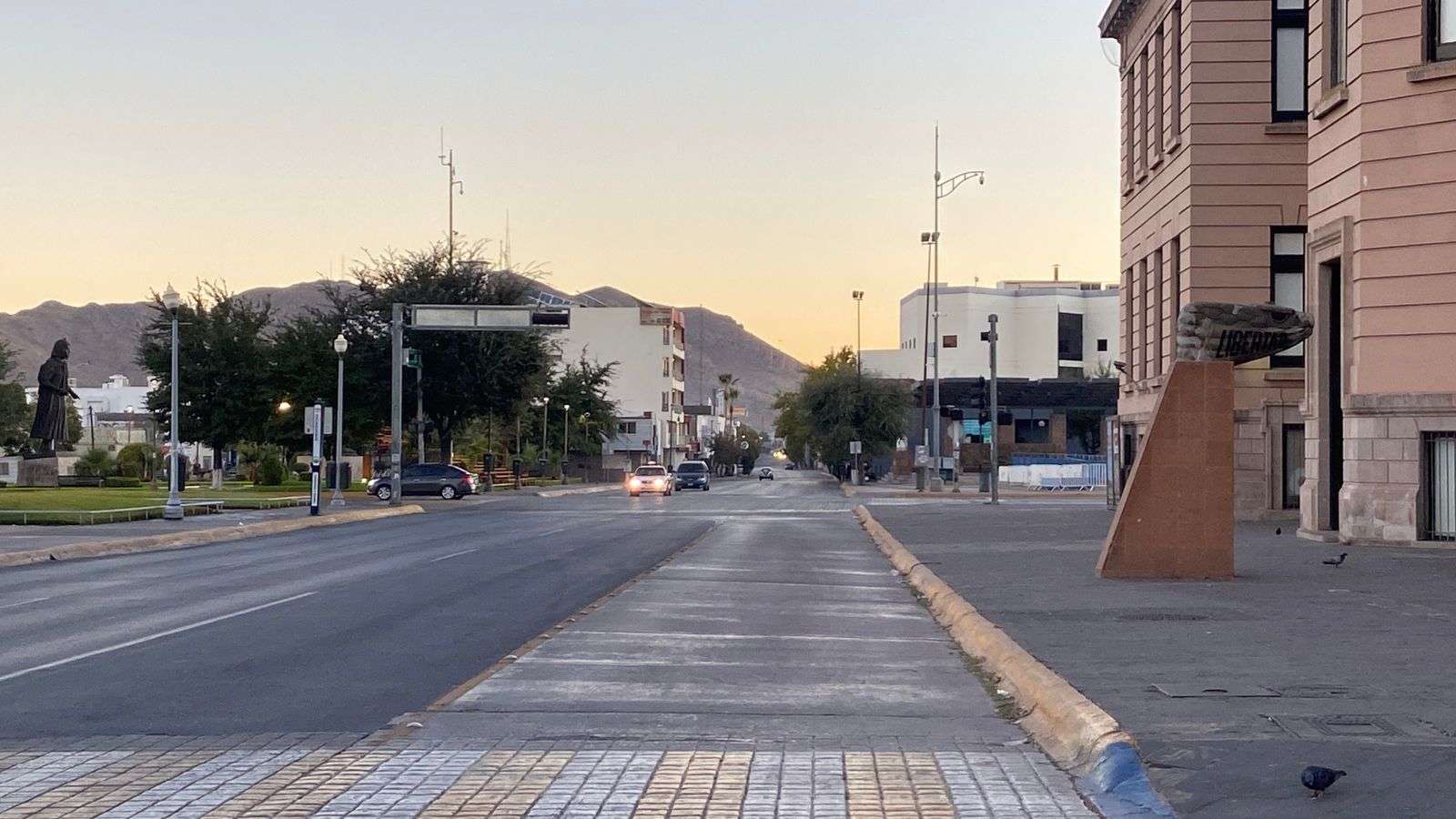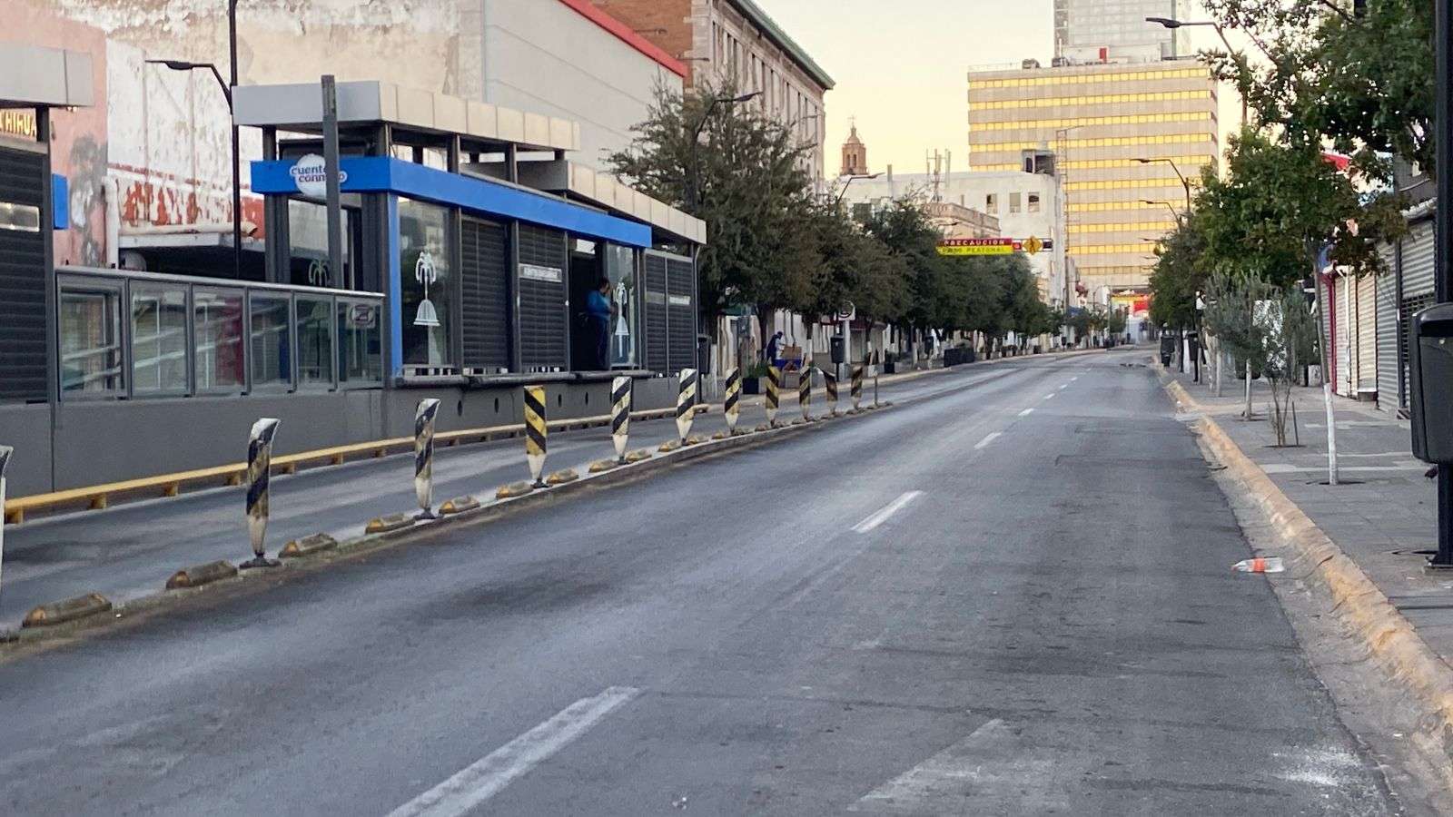 La avenida Juárez, la avenida Carranza y la calle Aldama, en la colonia Centro, también lucieron casi desiertas, con escasa circulación de vehículos y poca presencia de peatones.