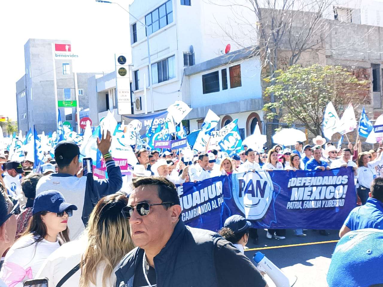 El contingente avanzó por las calles del Centro Histórico entre banderas azules, música y consignas de apoyo al partido. Dirigentes locales destacaron el acto como parte del relanzamiento del panismo en Chihuahua y un llamado a la unidad de su militancia.