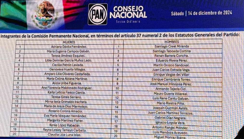 Chihuahua.- En una reciente votación, la Comisión Permanente Nacional del Partido Acción Nacional (PAN) ha aprobado la integración de nuevos miembros, destacando la incorporación de la gobernadora María Eugenia Campos Galván y Gabriel Díaz Negrete.