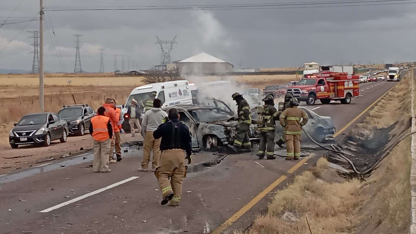 El accidente ocurrió cuando un vehículo Cadillac impactó fuertemente contra una camioneta Ford Explorer, Ambas unidades rapidamente fueron consumidas en su totalidad por el fuego.