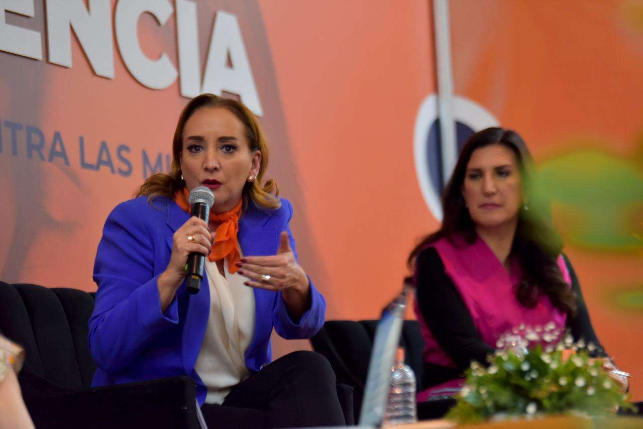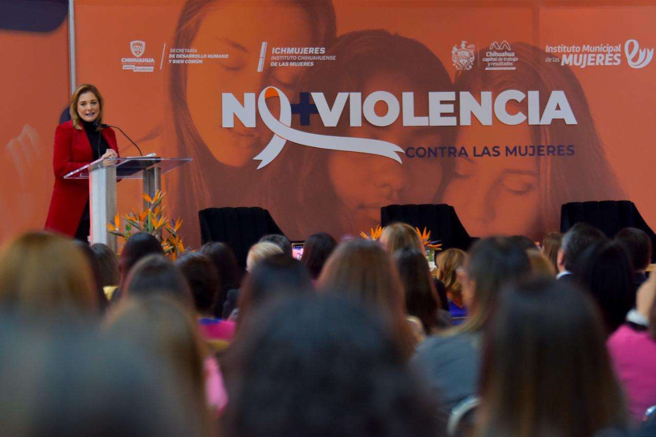 Chihuahua, Chih.- Al dar la bienvenida al simposium “No + Violencia contra las Mujeres”, realizado en el marco de la conmemoración por el Día Internacional de la No Violencia contra las Mujeres, la Gobernadora Maru Campos afirmó que juntas han aprendido que el instrumento más poderoso para hacer frente a la misoginia, es la sororidad.