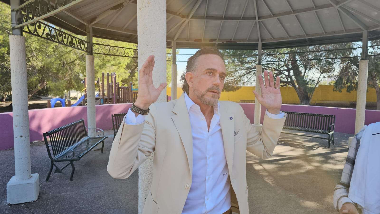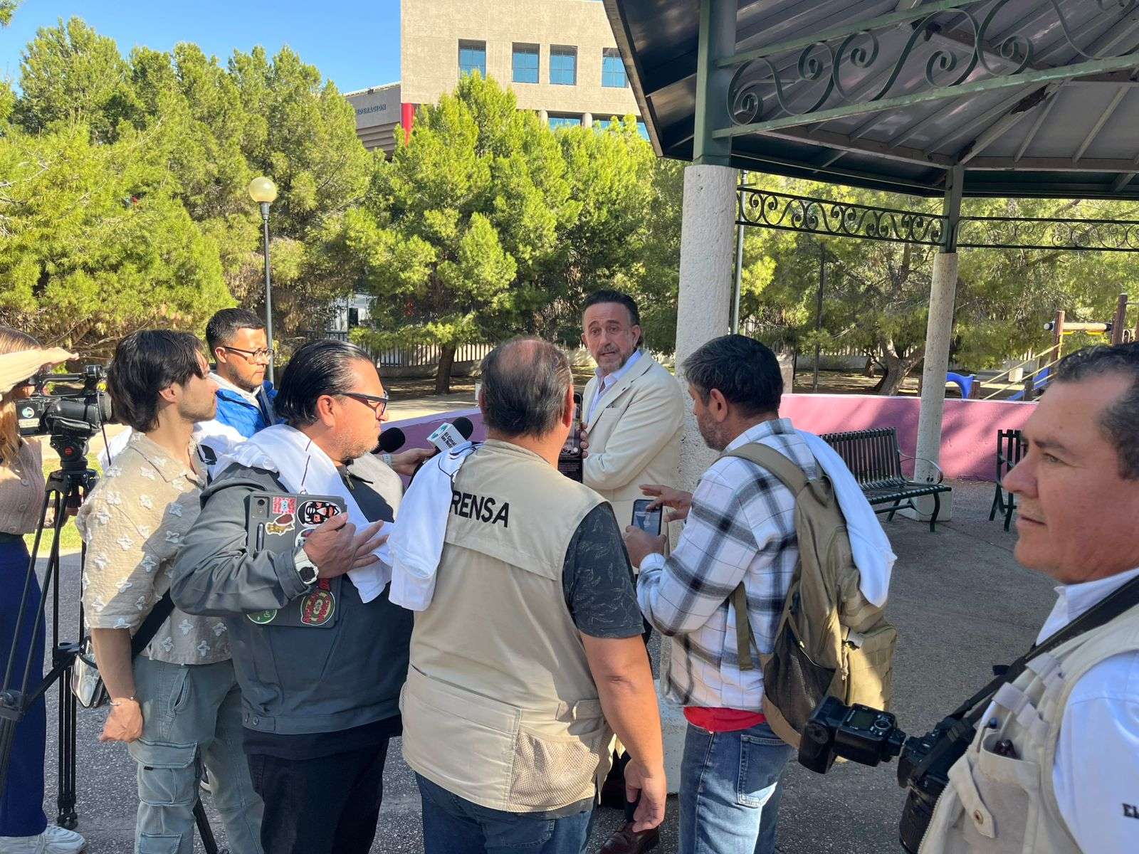 Chihuahua.- El empresario Eduardo Almeida, minutos antes de ingresar a la audiencia en la que enfrenta cargos como imputado, ofreció una rueda de prensa en la que acusó al exgobernador de Chihuahua, Javier Corral, de estar detrás de lo que consideró una persecución política en su contra, denunció que el proceso judicial que enfrenta no tiene base real y que se está utilizando para manipular la justicia y desviar recursos públicos.