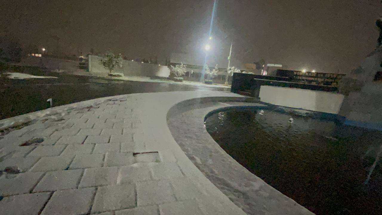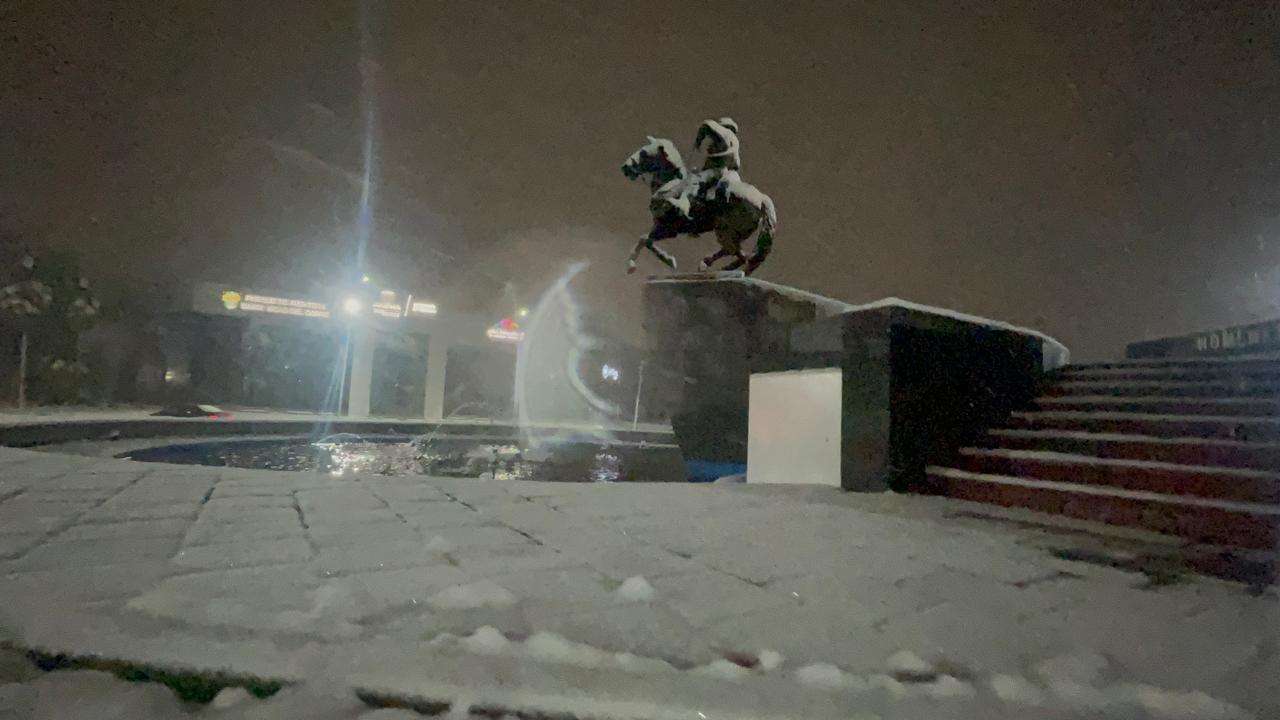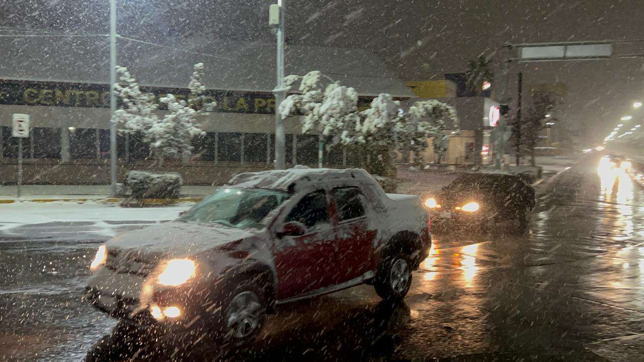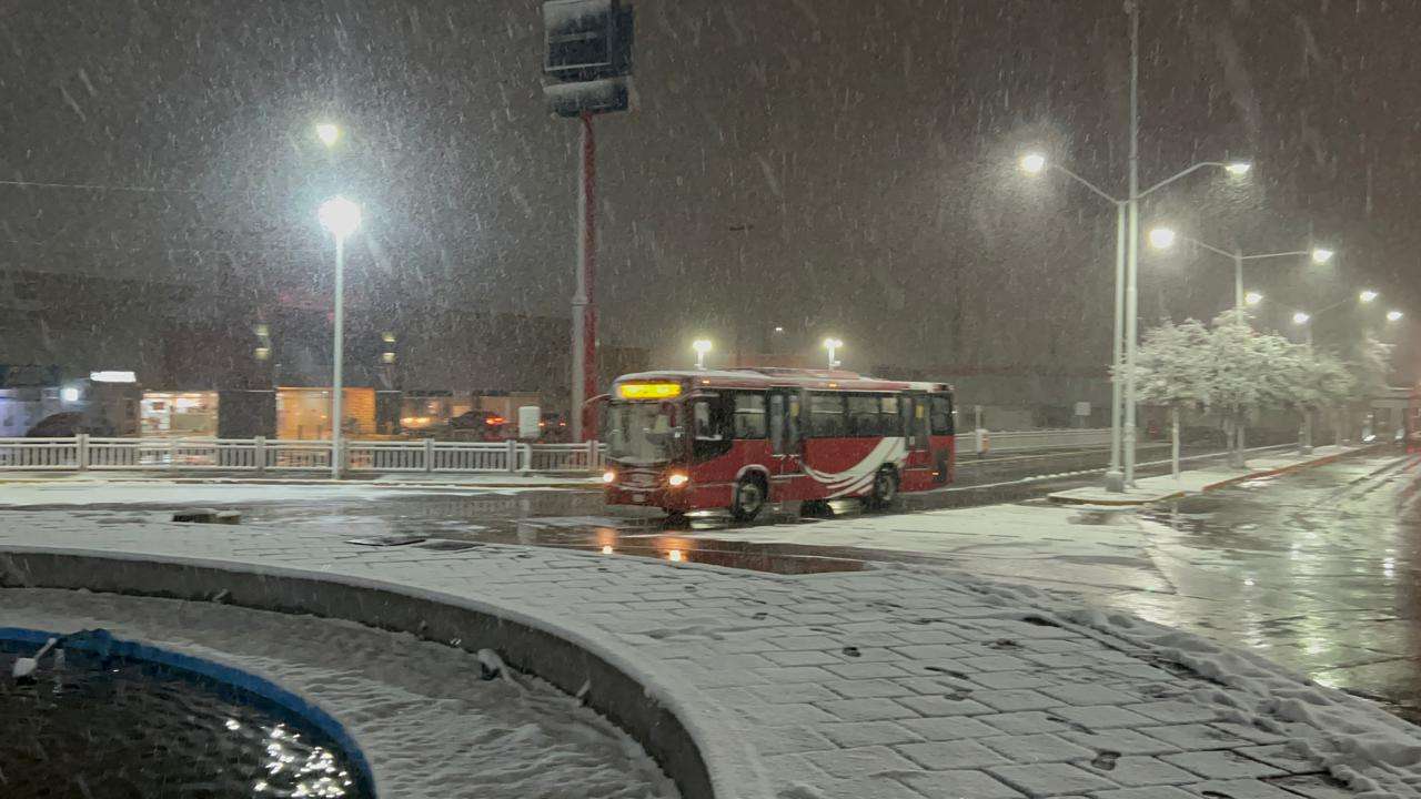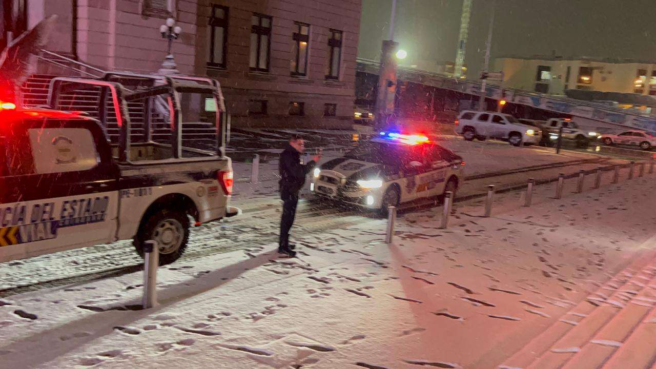 Con una capa de nieve de hasta tres pulgadas, amanecieron las calles banquetas y vehículos en la capital del Estado.