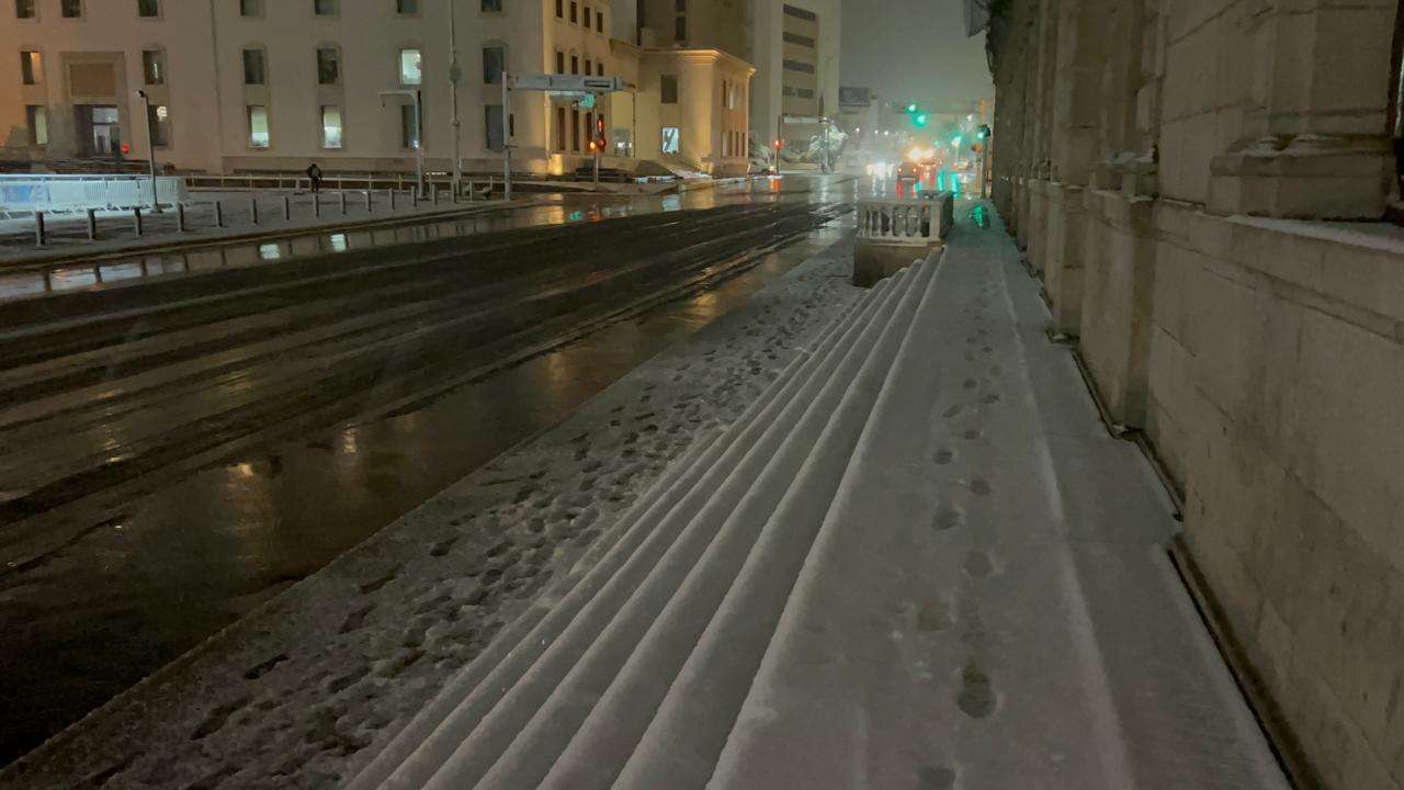 Fue alrededor de las 22:30 horas de ayer jueves, cuando las primeras plumas de nieve comenzaron a caer inicialmente al sur de la ciudad, y poco a poco toda la ciudad se cubrió de un manto blanco.