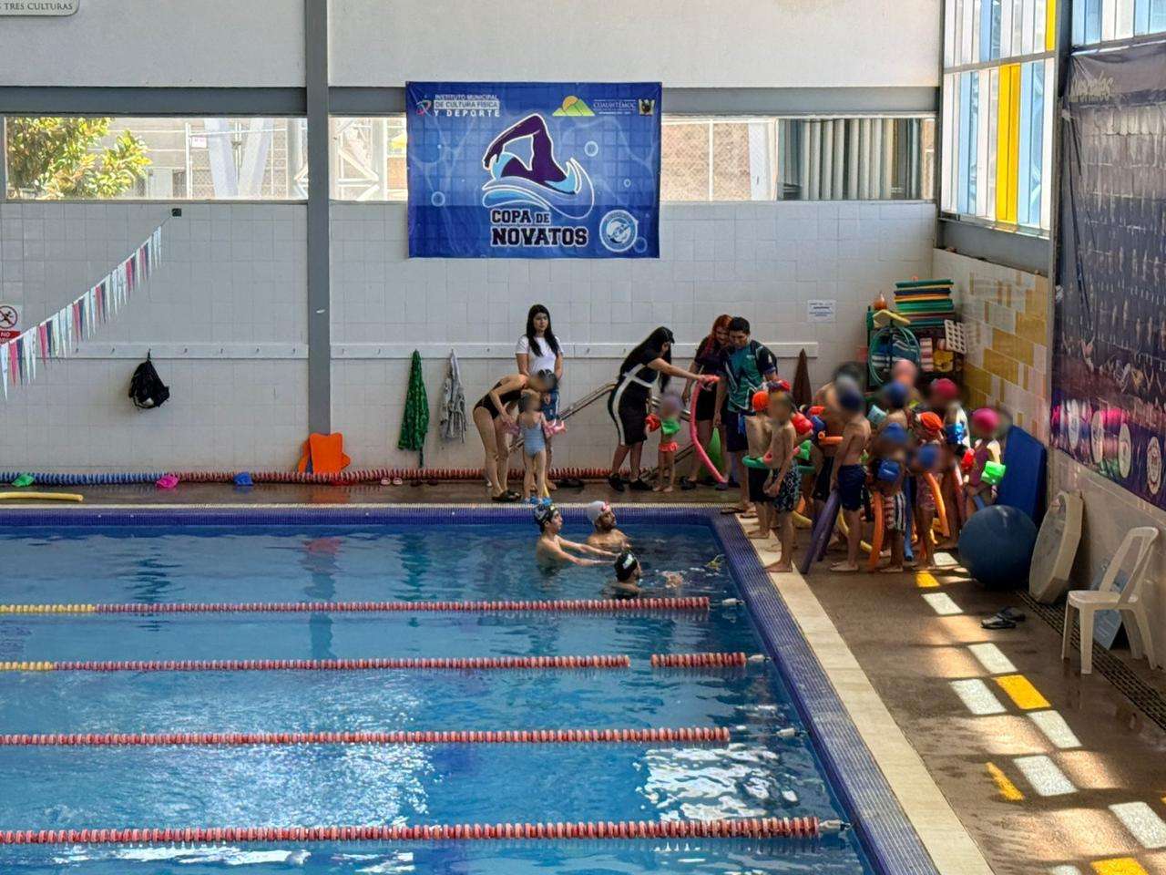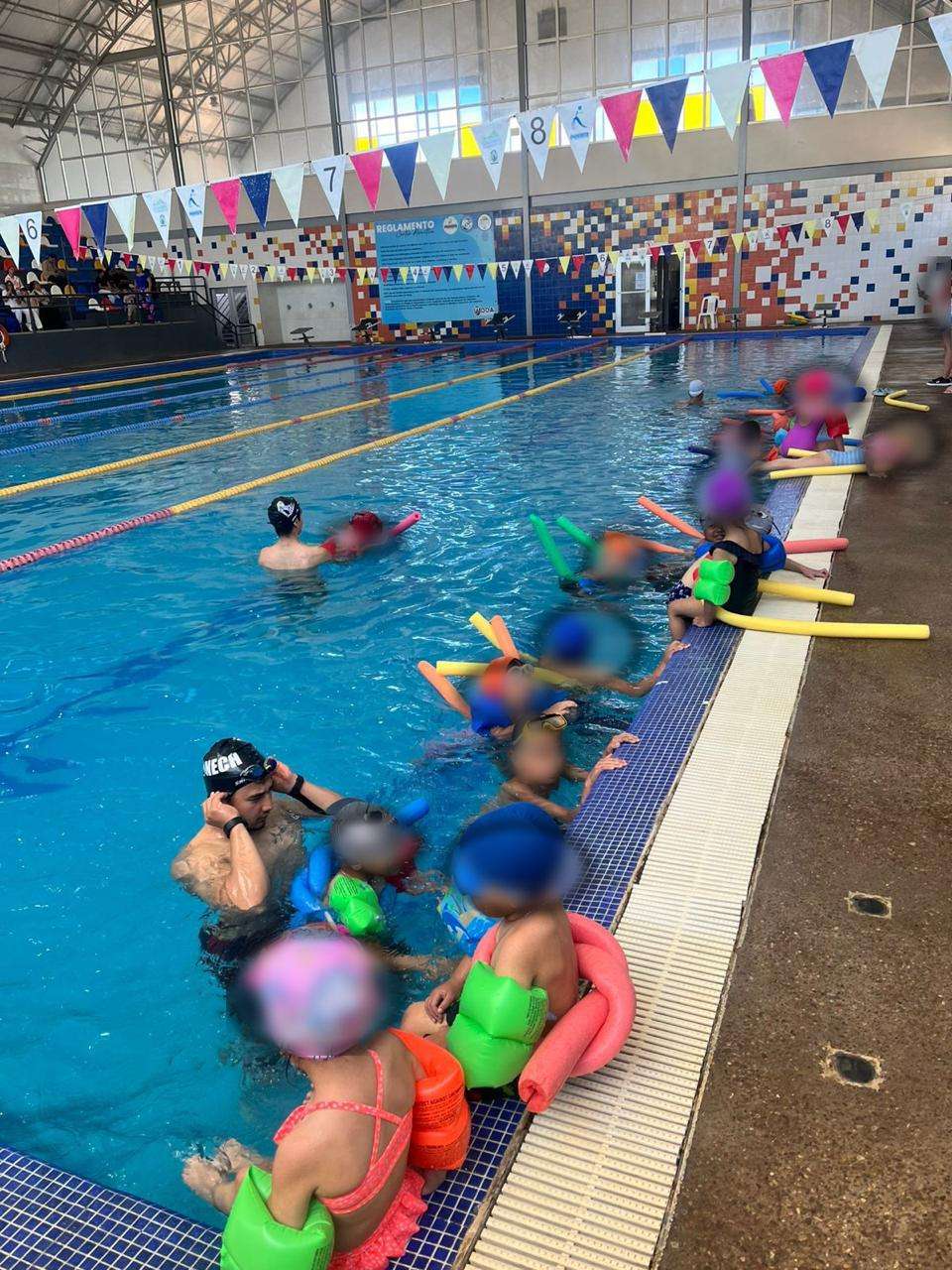 Cuauhtémoc, Chih. - La Comisión Ejecutiva de Atención a Víctimas (CEAVE), Cuauhtémoc, celebró por adelantado el Día de la Niñez, mediante actividades en la alberca del Polideportivo a niñas y niños quienes estuvieron acompañados por sus padres.