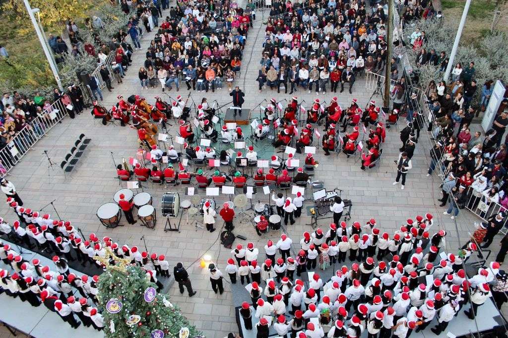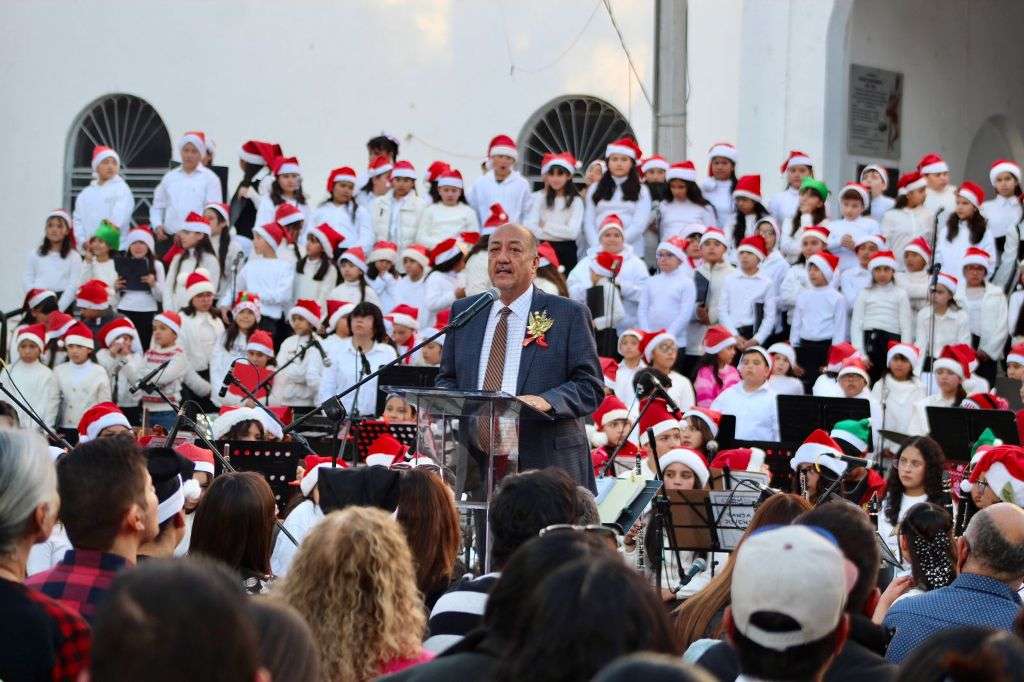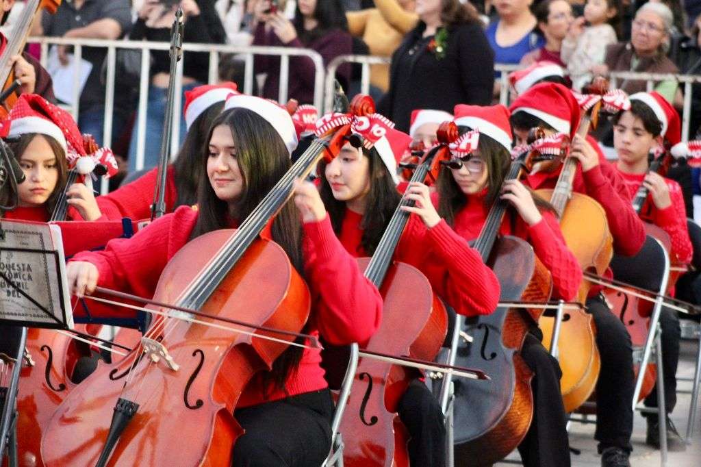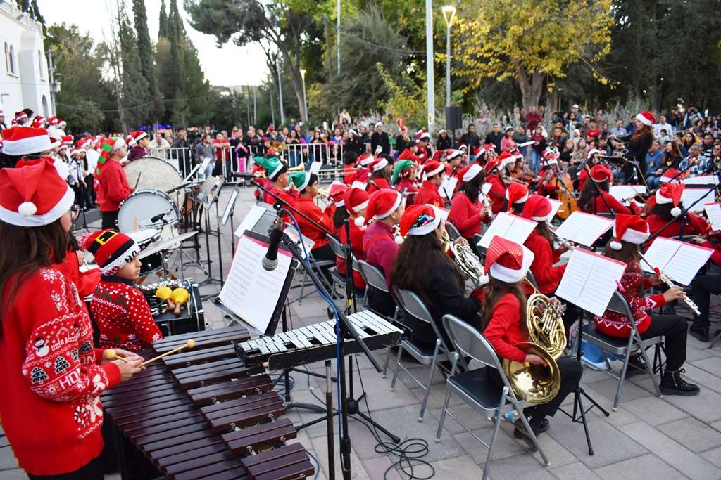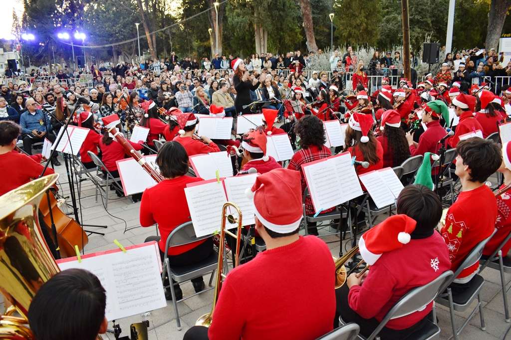 El evento se llevó a cabo en la explanada del discóbolo de la Ciudad de Deportiva, donde cientos de familias acudieron a disfrutar de una presentación con recorrido por algunas de las melodías navideñas más emblemáticas, así como obras clásicas interpretadas y acompañadas de una breve narrativa teatral.