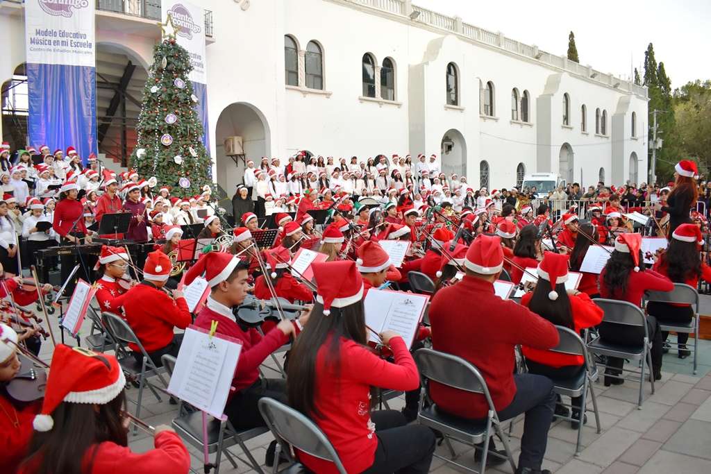 Chihuahua.- La Secretaría de Educación y Deporte (SEyD), a través del programa Música en mi Escuela, realizó el tradicional Festival Navideño, en donde más de 300 estudiantes de diversas primarias dieron muestra de su preparación, disciplina y alegría.