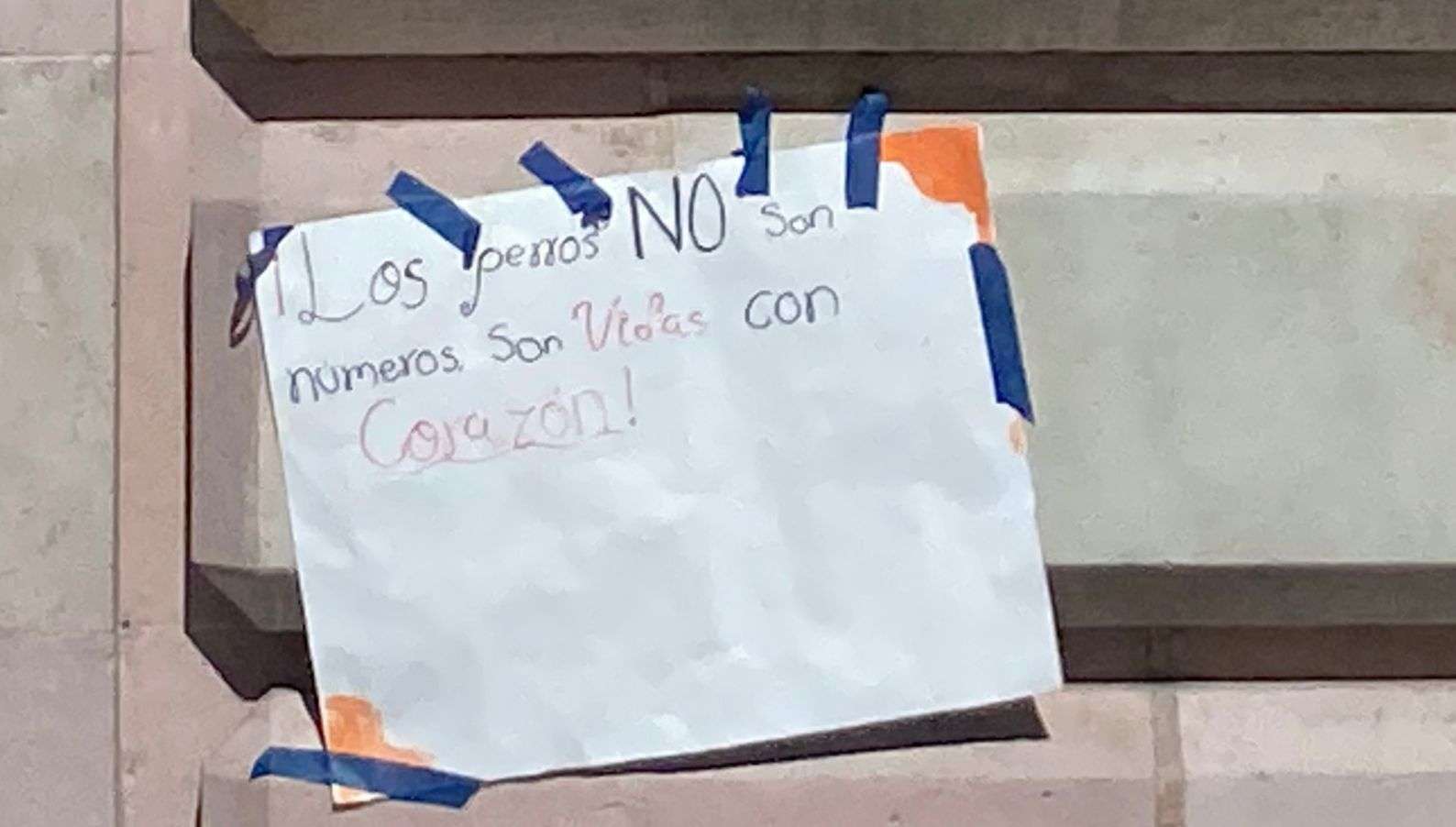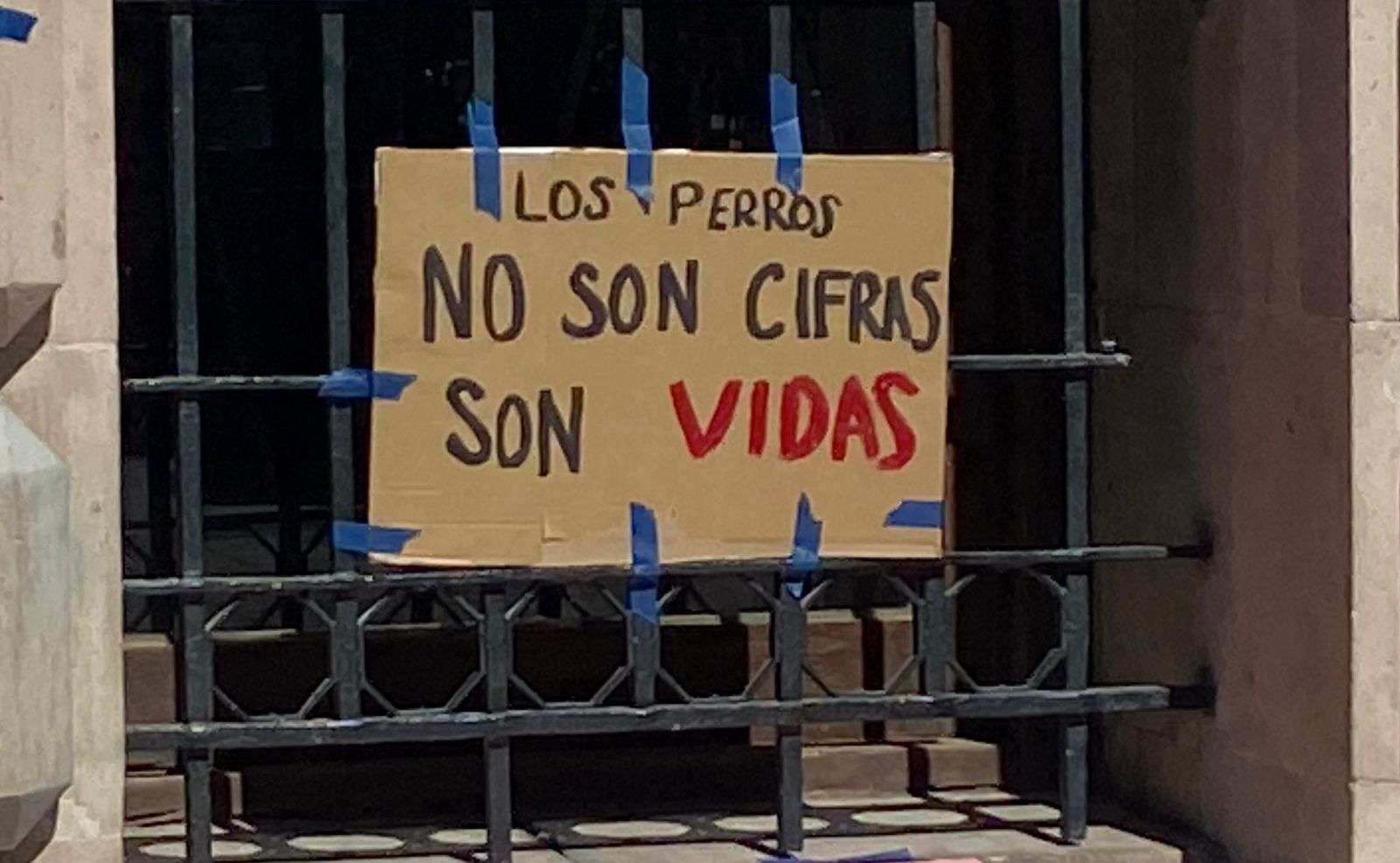 Entre los mensajes plasmados en las cartulinas destacan: “Los perros no son cifras, son vidas”, “No es golpe político, es golpe de realidad” y “No es rescate, es desaparición”.