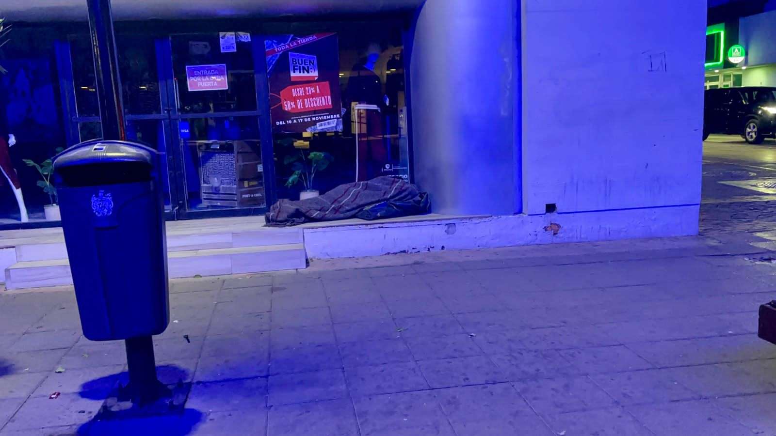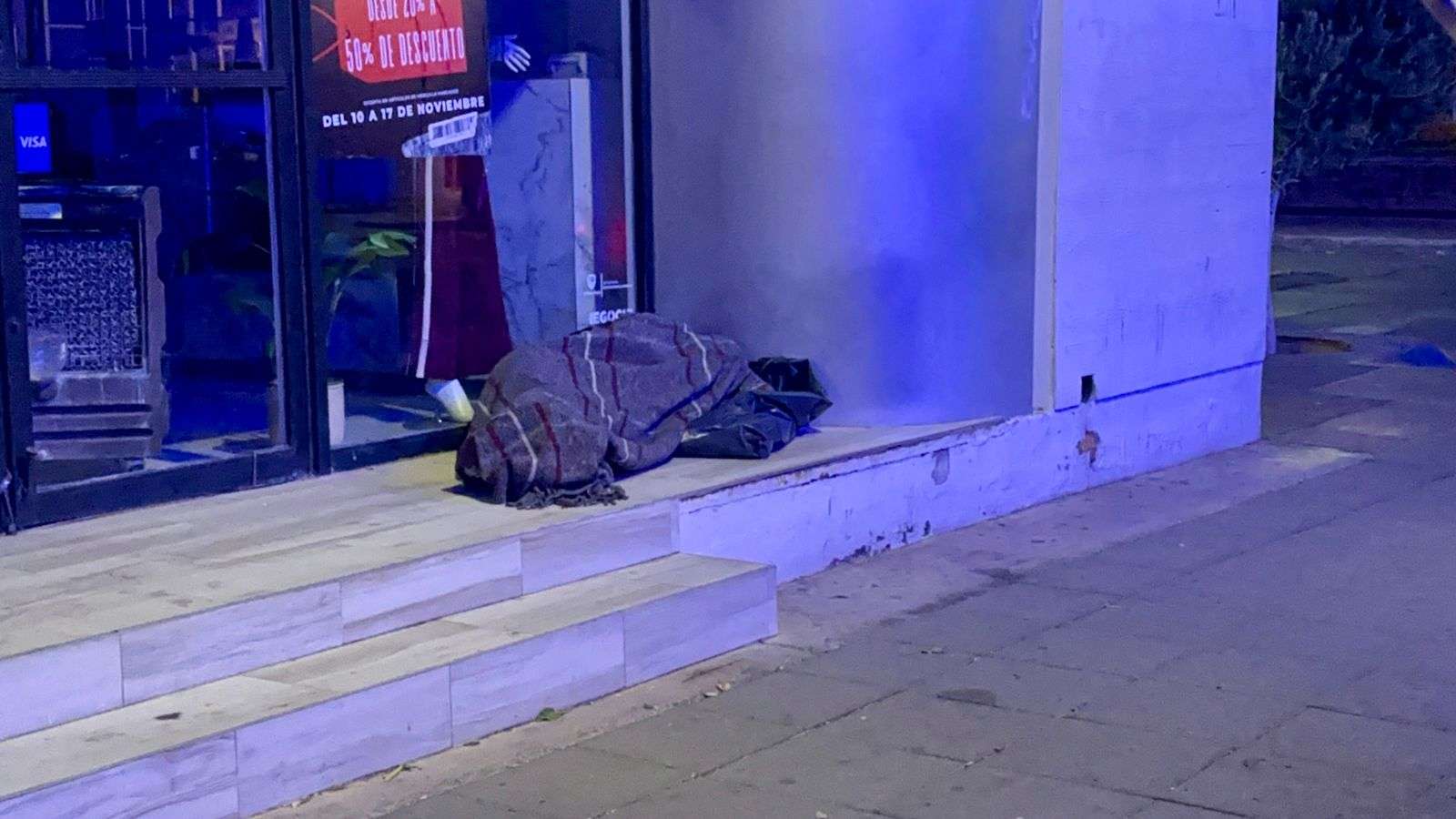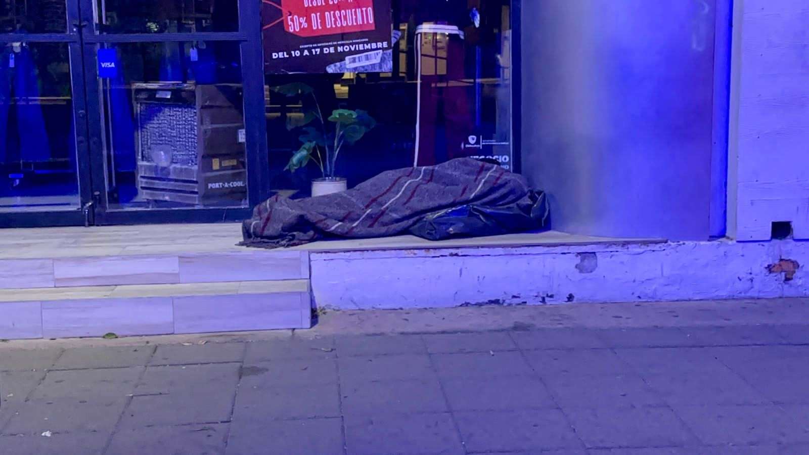 Chihuahua.- En varios puntos del centro histórico la ciudad de Chihuahua, personas en condición de calle pernoctan, simplemente protegiéndose con algunos cartones en el suelo y un par de cobijas para mitigar los efectos climatológicos.