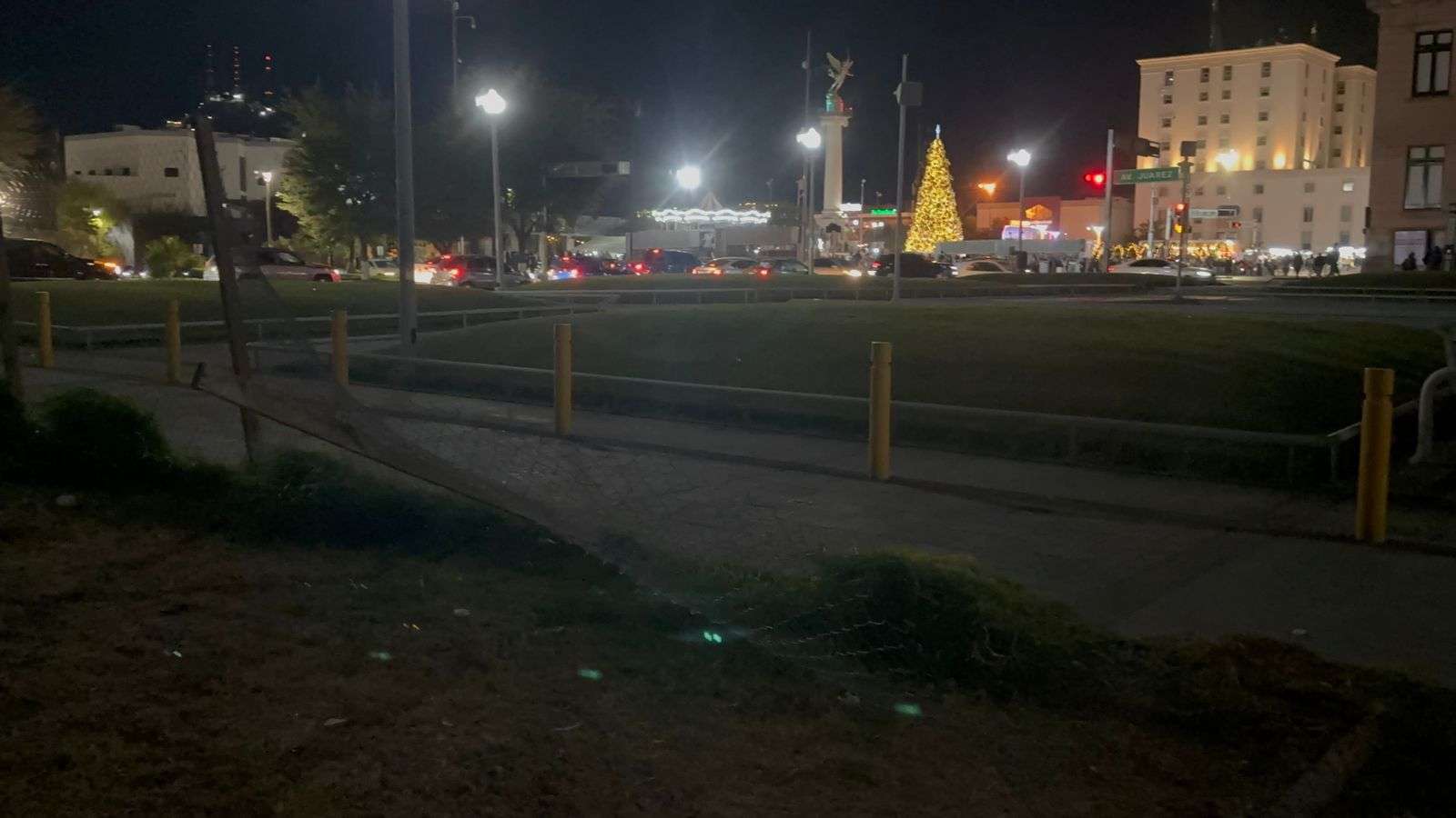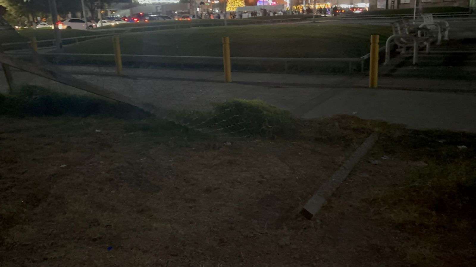 Chihuahua, Chih.- Ciudadanos que acuden a pasear y disfrutar de las Fuentes Danzarinas alertaron a las autoridades sobre el riesgo que representa una malla de protección caída en este espacio público, la cual debería impedir el acceso al estacionamiento inconcluso ubicado en el cruce de las avenidas Niños Héroes y Carranza.