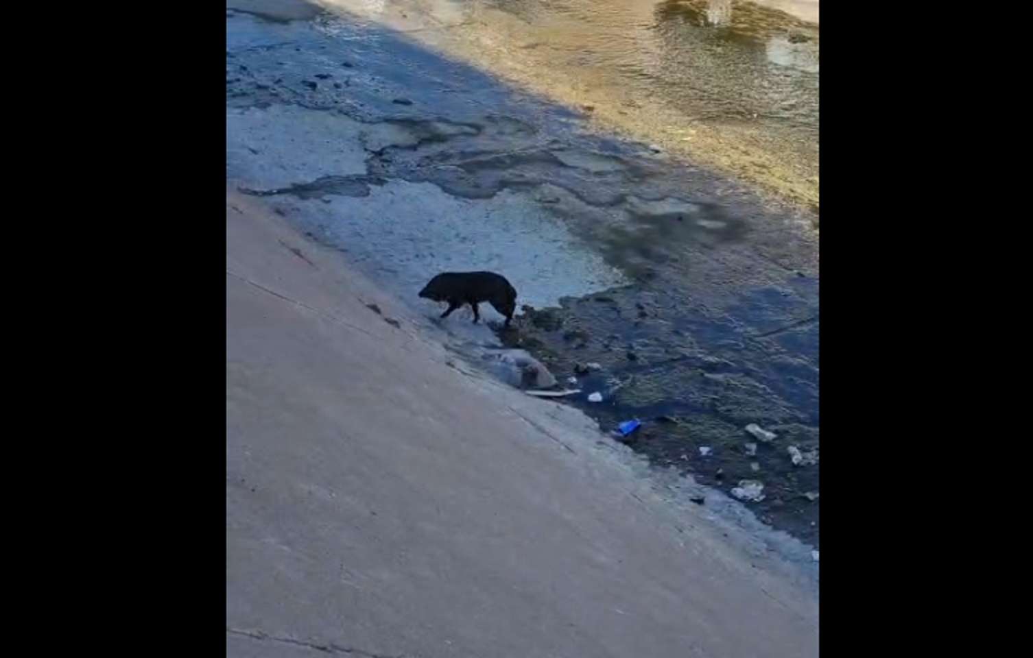 Chihuahua, Chih.- La mañana de este viernes fue captada en video una persecución protagonizada por elementos de la Policía Municipal tras detectar a un jabalí macho que ingresó al cauce del canal Chuvíscar, volviéndose rapidamente viral en redes sociales, gracias a que el usuario de nombre "Mario Valdez" lo compartió en Facebook.