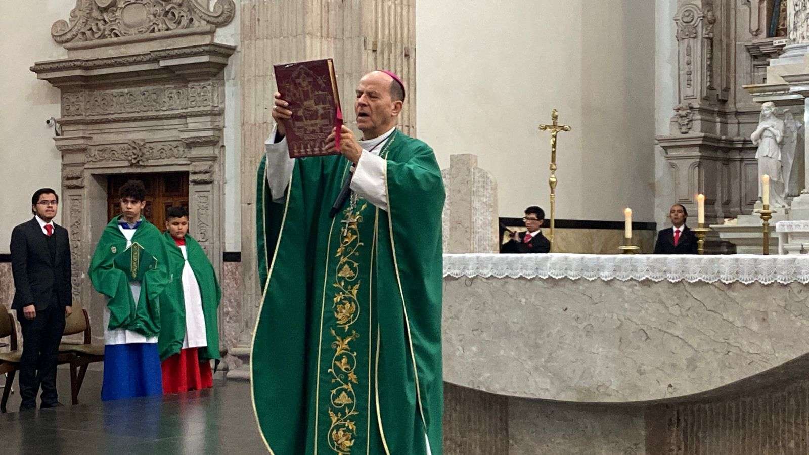 Chihuahua, Chih. - Durante la misa dominical celebrada en la Catedral Metropolitana, el Arzobispo Constancio Miranda hizo un llamado a orar por los gobernantes de nuestro país y del mundo, pidiendo que dirijan sus pensamientos y decisiones hacia la construcción de una paz verdadera.