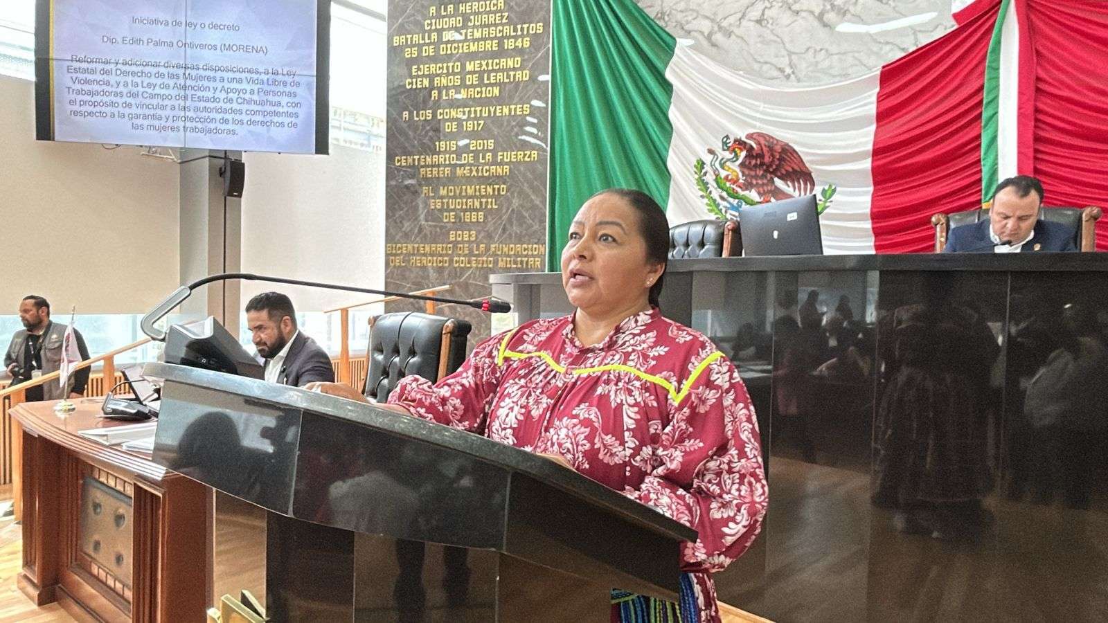 Chihuahua. — En el marco de las conmemoraciones por el día internacional de la mujer, la diputada Edith Palma Ontiveros, integrante del grupo parlamentario de MORENA, presentó ante el congreso del estado una iniciativa con carácter de decreto que busca reformar la ley estatal del derecho de las mujeres a una vida libre de violencia y la ley de atención y apoyo a personas trabajadoras del campo.
