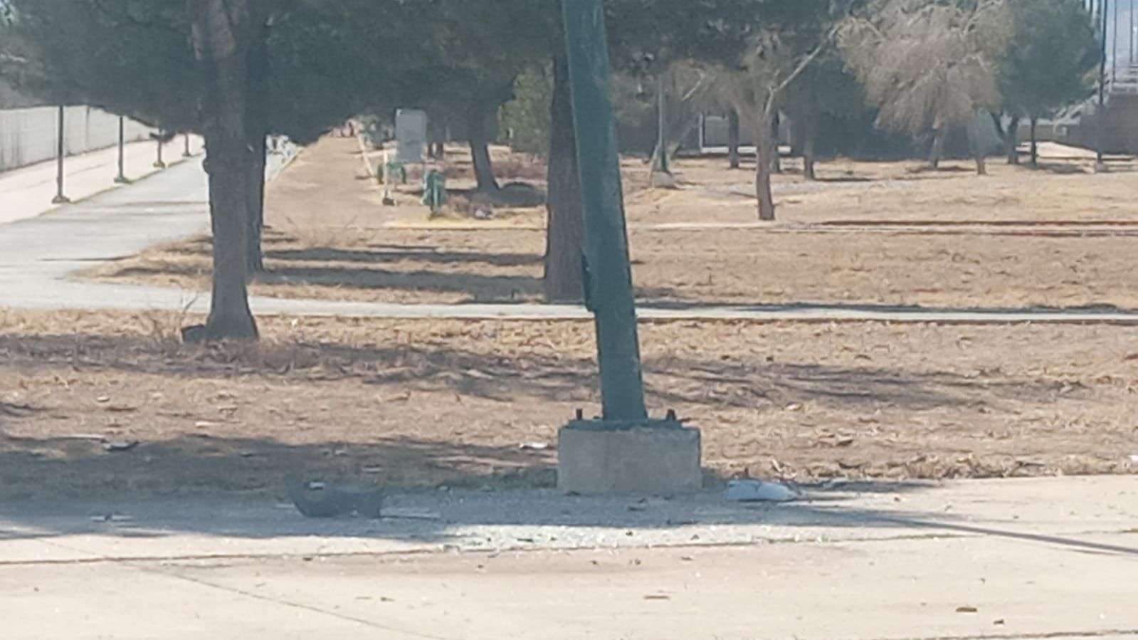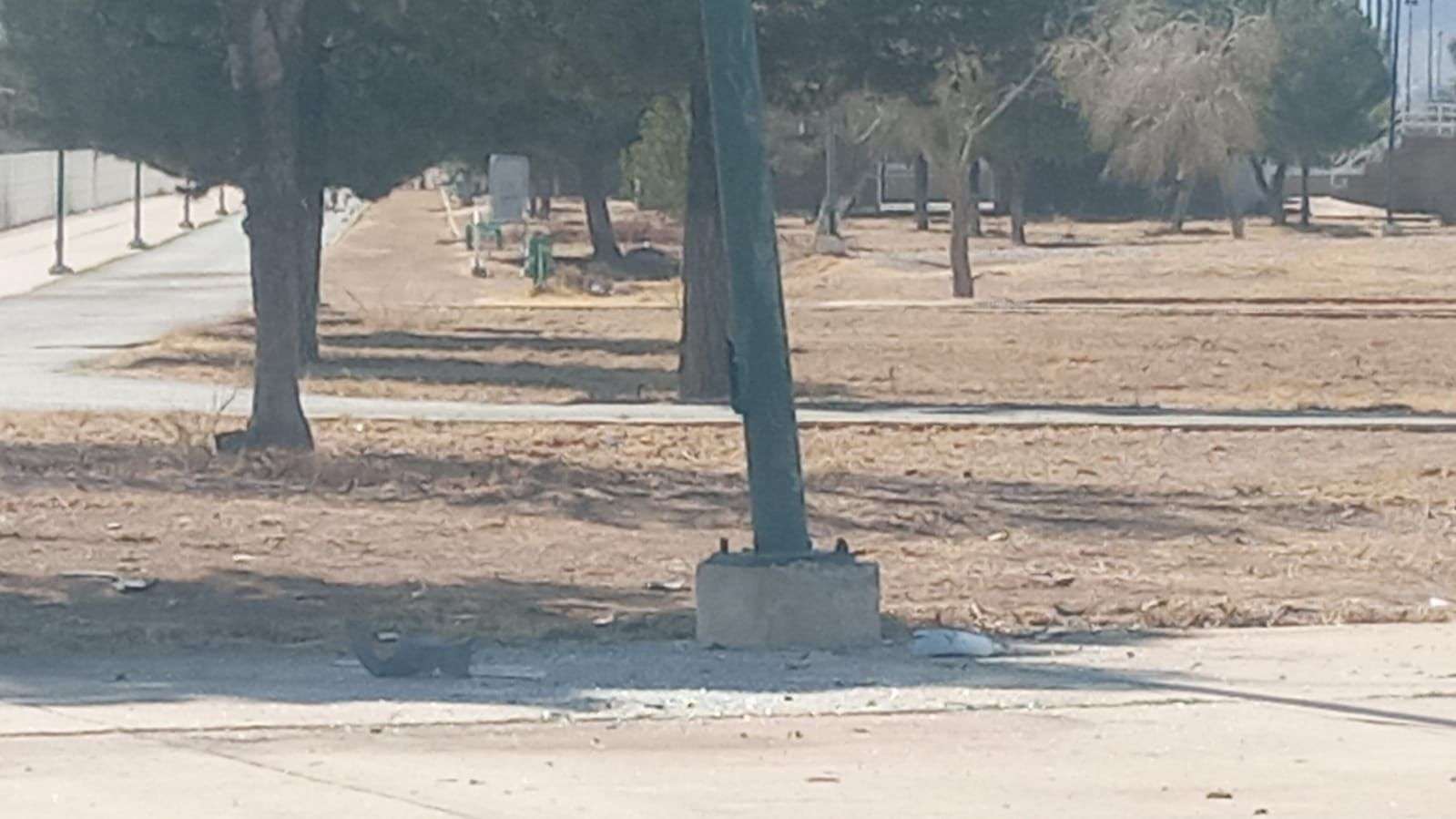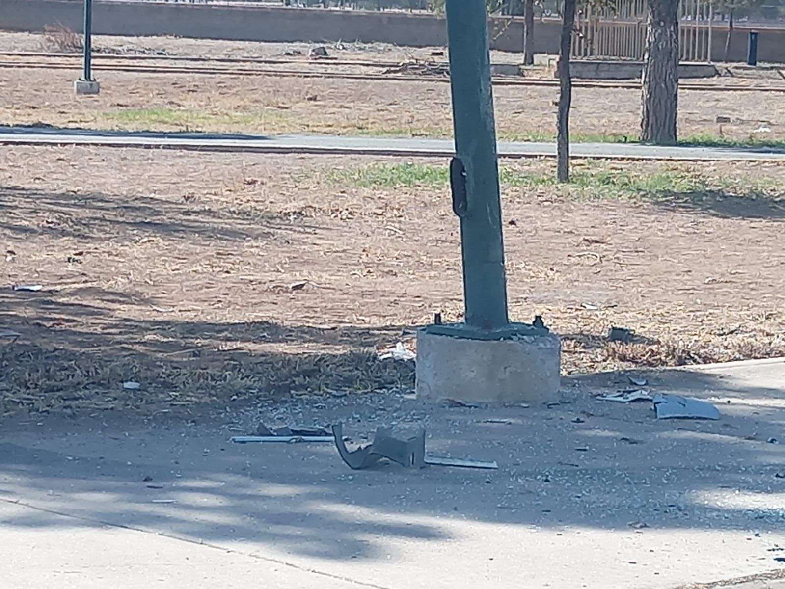 En el lugar aún se pueden observar las partes del vehículo siniestrado que derribaron parte de la malla ciclónica colocada alrededor de la deportiva para los Juegos de la Amistad.