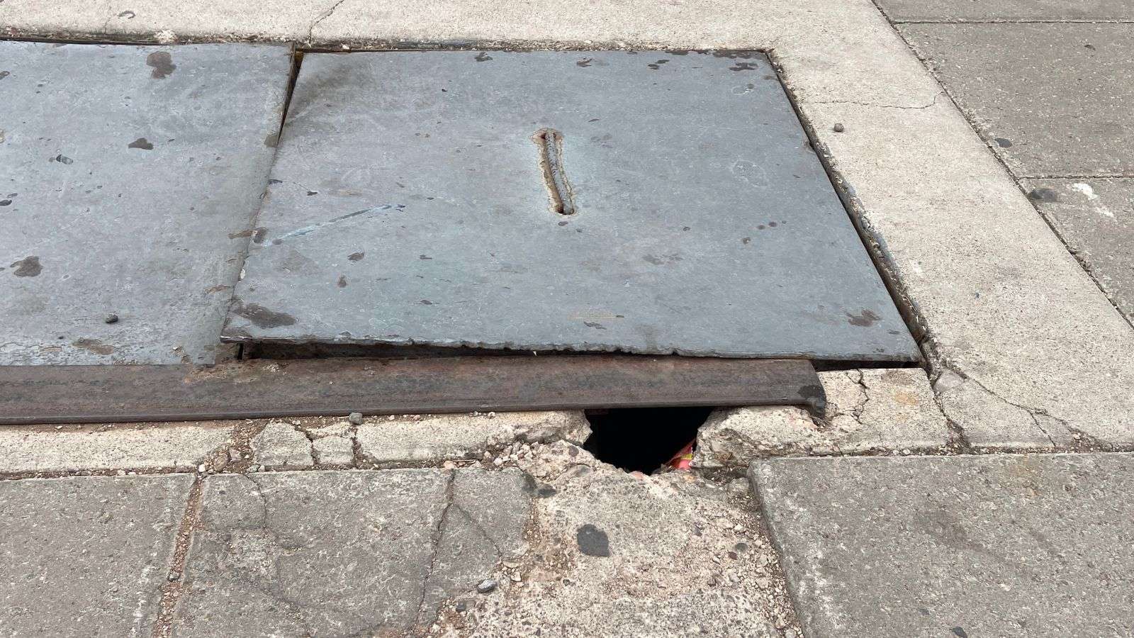 Asimismo, la tapa que forma parte del sistema de servicios subterráneos, se encuentra en mal estado desde hace varios días.