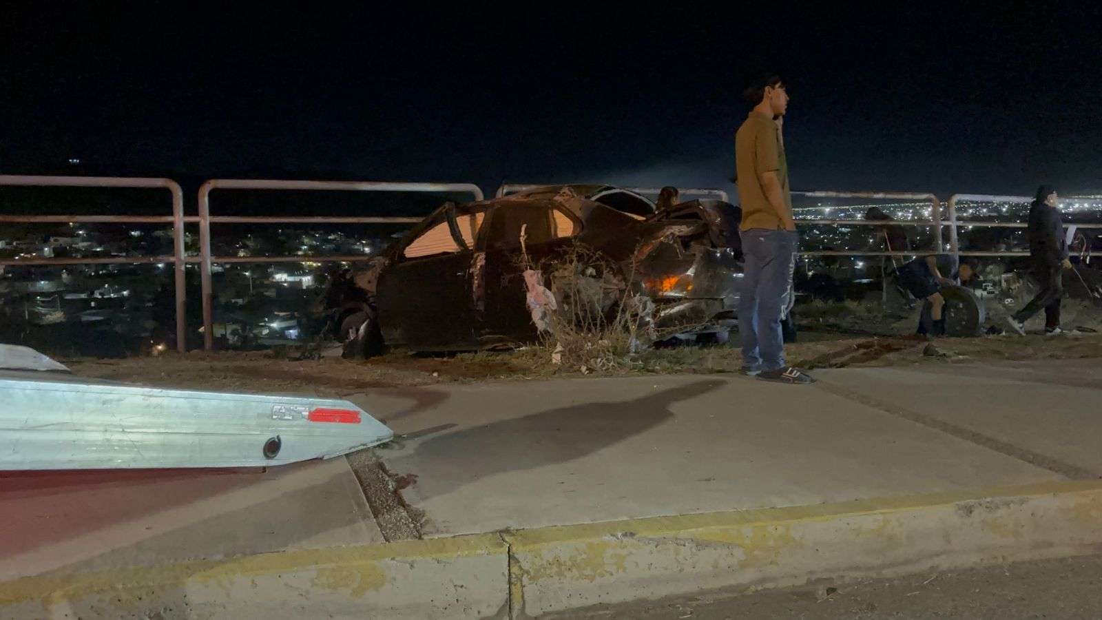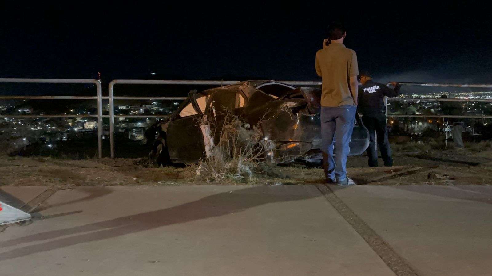 Chihuahua, Chih.– El conductor de un vehículo Volkswagen Jetta GLI que circulaba en sentido de este a oeste sobre el periférico Francisco R. Almada perdió el control al tomar una curva a exceso de velocidad, lo que provocó que volcara en repetidas ocasiones hasta impactarse contra la estructura de contención.
