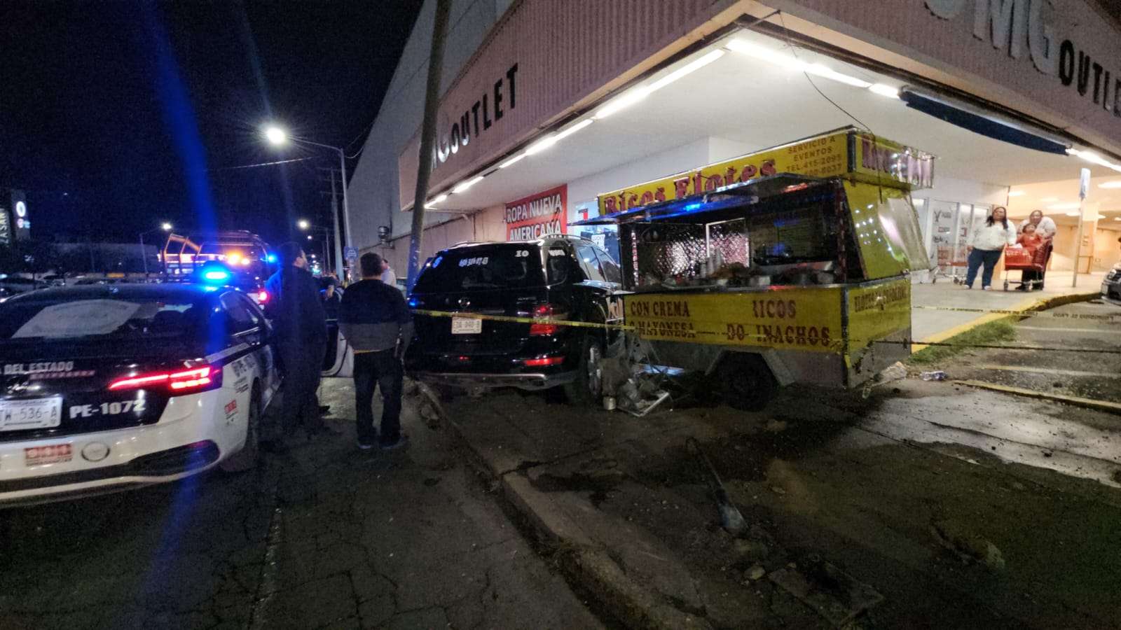 La camioneta continuó su trayectoria descontrolada hasta terminar impactándose contra un puesto ambulante de venta de elotes, ubicado justo en la entrada de una tienda Soriana, generando alarma entre peatones y automovilistas.