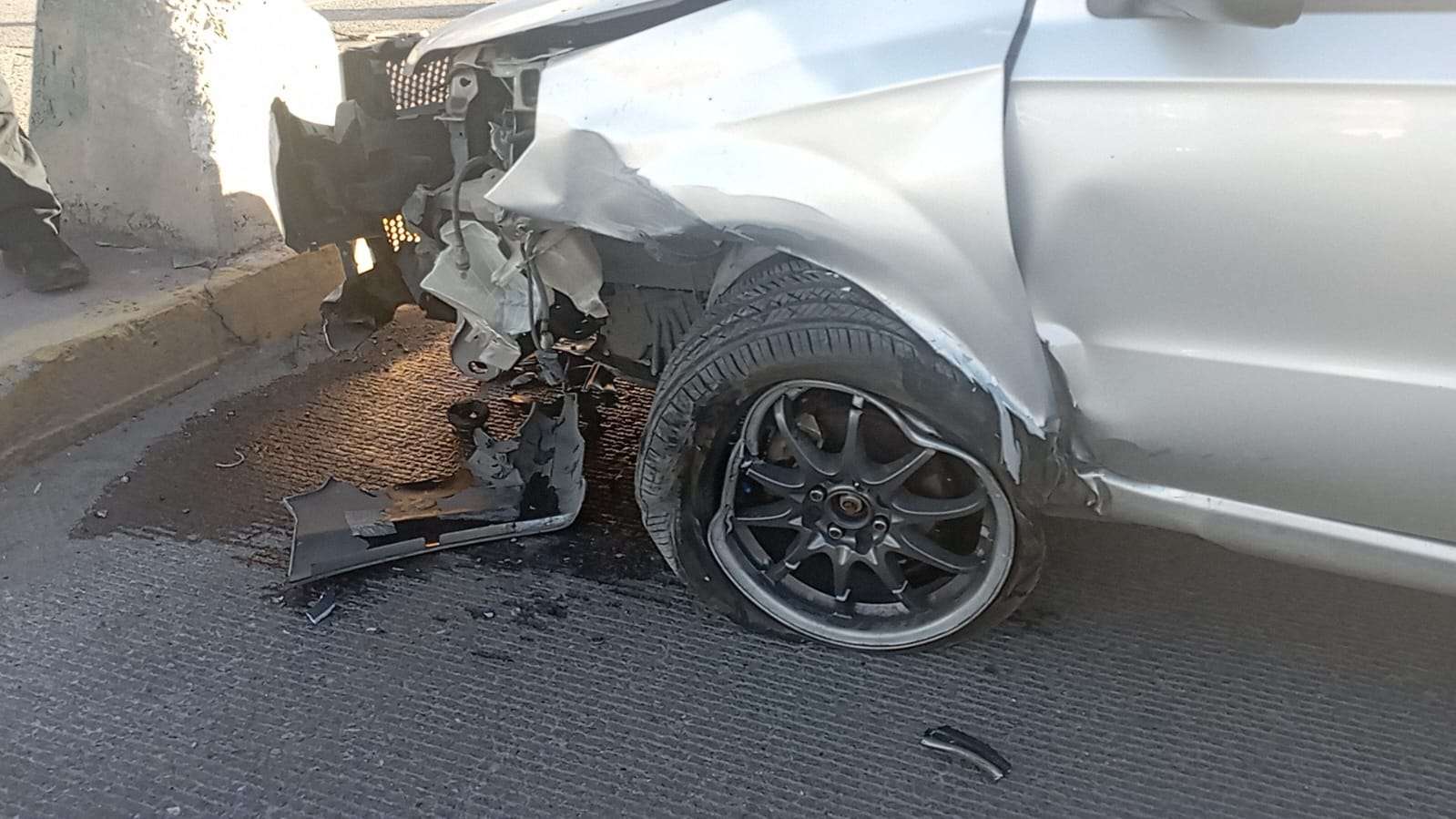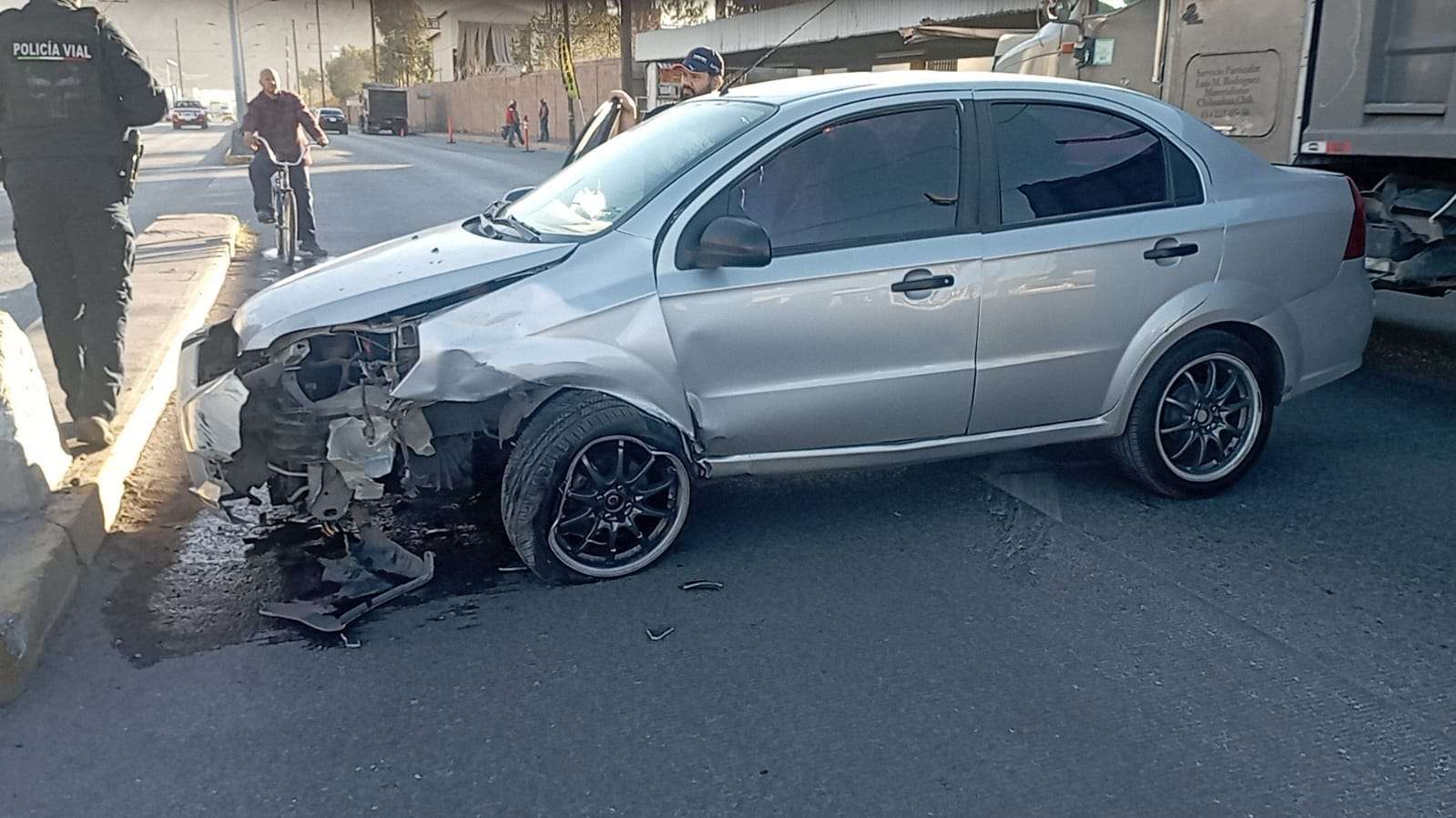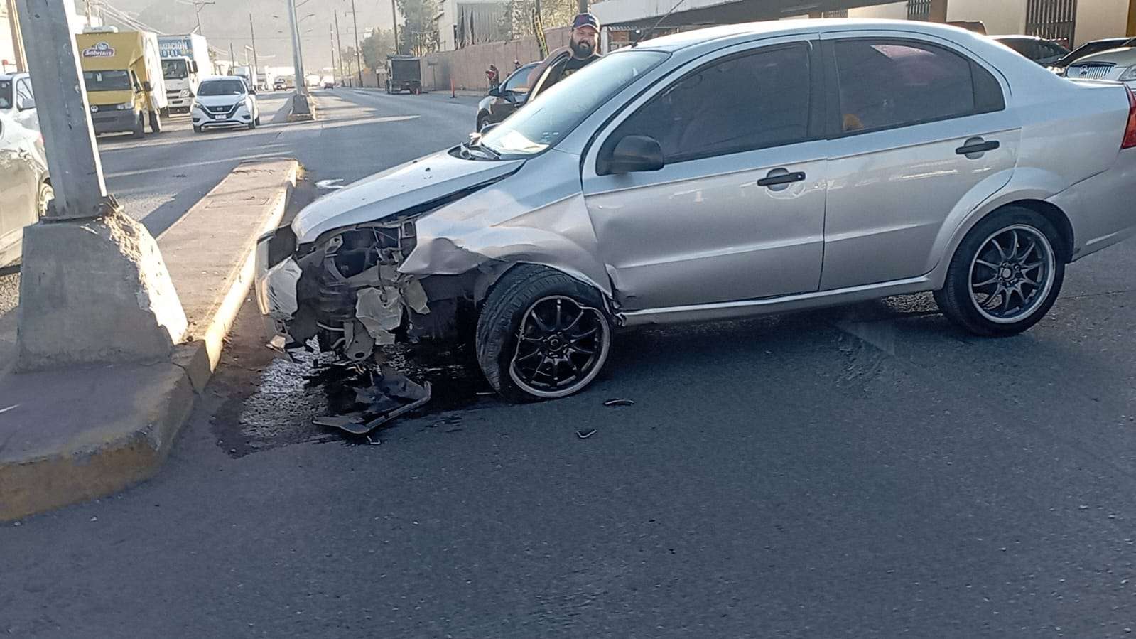Chihuahua.- Un fuerte choque ocurrió sobre la avenida Juan Escutia, casi en el cruce con la Avenida de las Industrias, cuando un vehículo Chevrolet Aveo perdió el control y se estrelló contra la base de una luminaria.