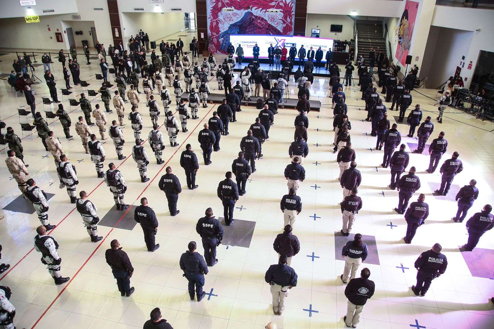 Al acto efectuado en las oficinas de Gobierno del Estado en Juárez (Pueblito Mexicano), asistieron el alcalde de Ciudad Juárez, Cruz Pérez Cuellar; el comandante de la V Zona Militar, general Federico Eduardo Solorzano Barragán; el coordinador estatal de la Guardia Nacional en Chihuahua, general Víctor Fernández Mondragón; el delegado federal de programas de desarrollo de la Secretaría del Bienestar, Juan Carlos Loera de la Rosa; el delegado estatal de la Fiscalía General de la República, Ramón Ernesto Badillo Aguilar; y el secretario técnico de la Secretaria de Seguridad y Protección Ciudadana, Fernando Ávila González.