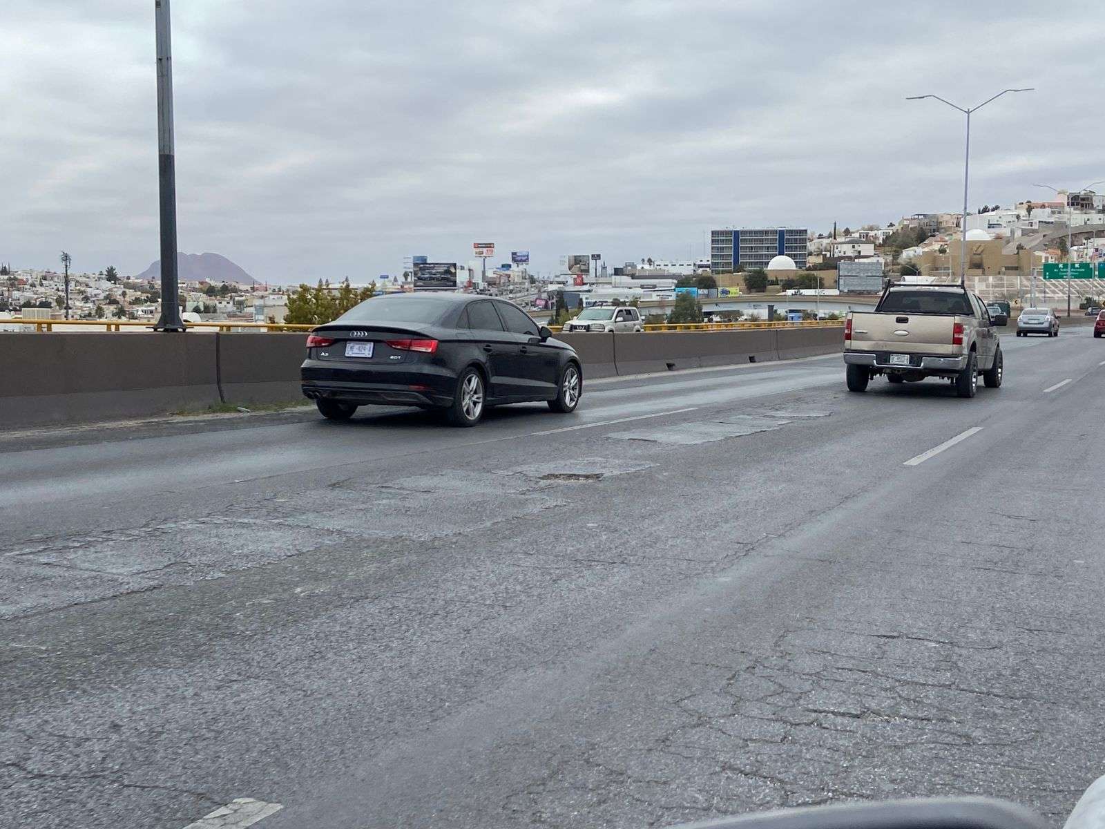 Chihuahua.- Una gran cantidad de baches en el Periférico de la Juventud, en sentido norte a sur ha encendido las alertas entre automovilistas que diariamente transitan por esta importante arteria vial.