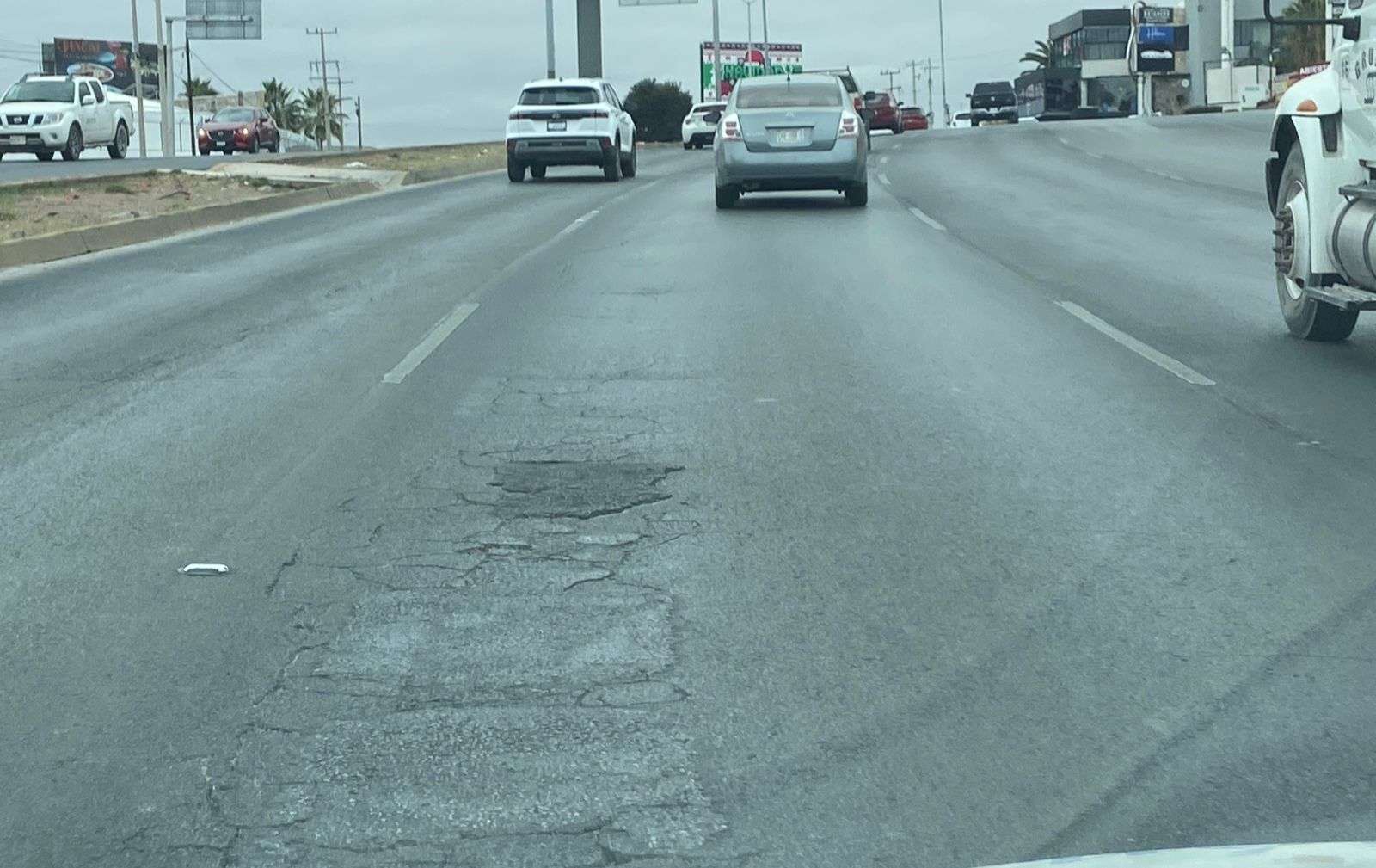 Asimismo, se pueden observar baches de distintos tamaños, así como obras inconclusas y tramos con asfalto en condiciones deplorables, lo que afecta la fluidez del tráfico, sino que también incrementa la posibilidad de accidentes y daños a los vehículos.