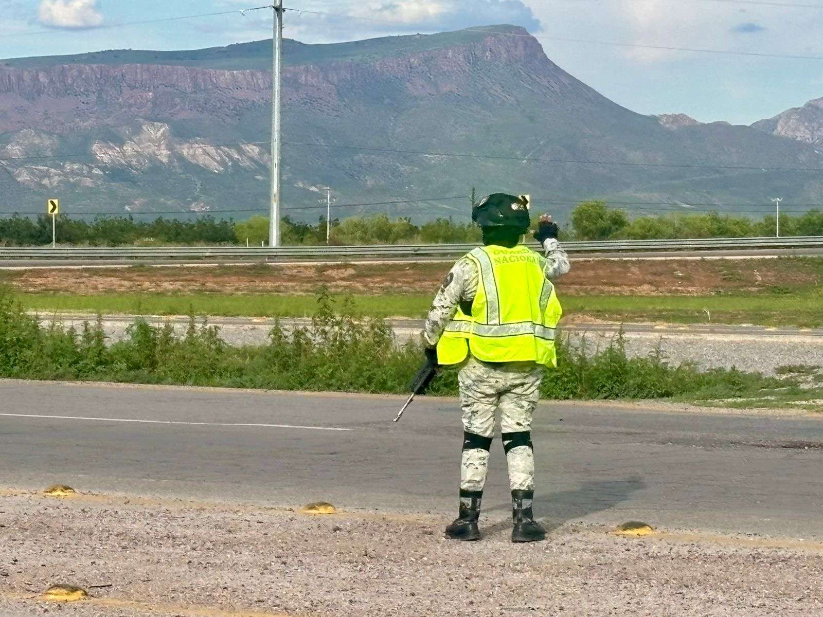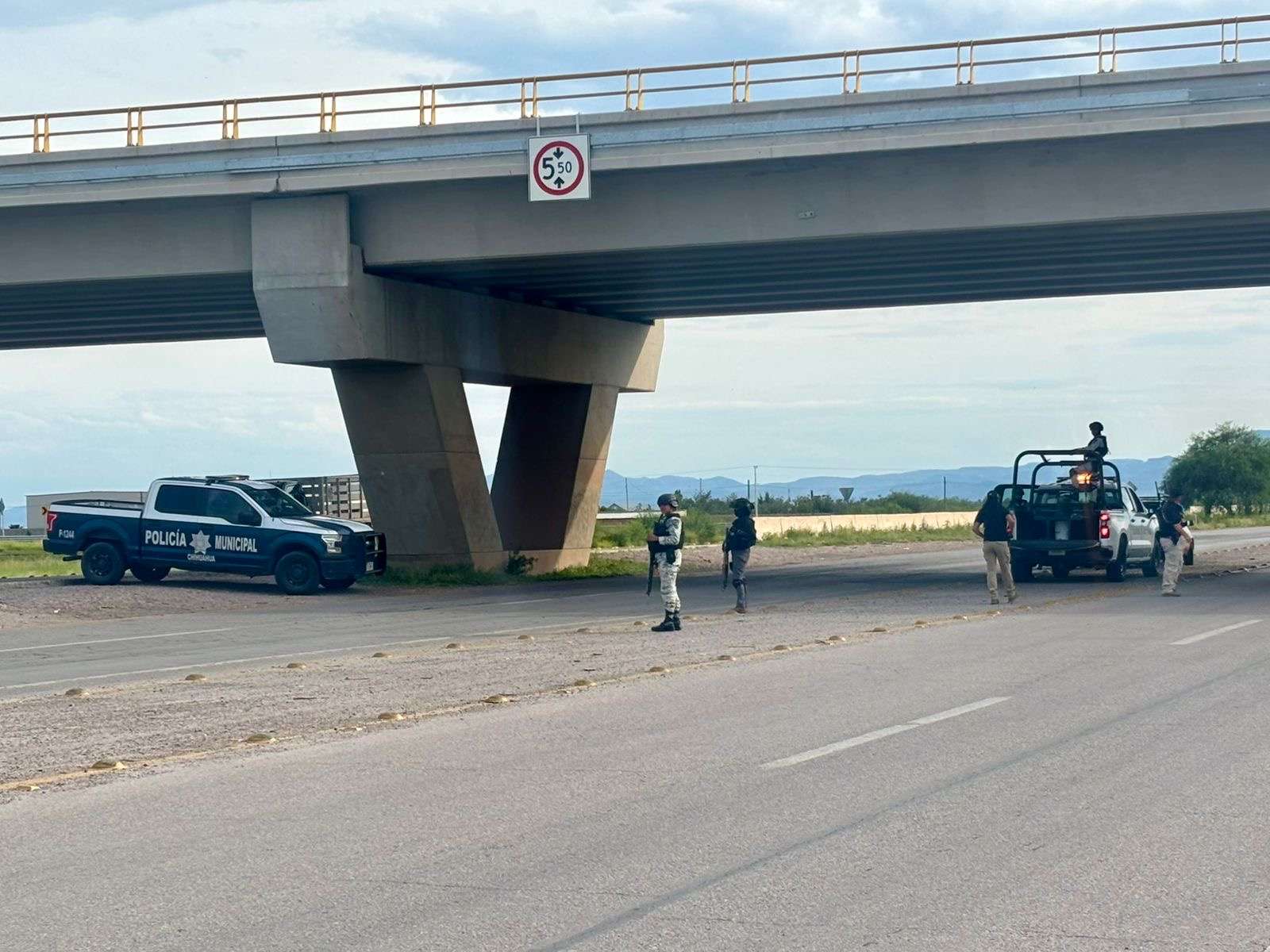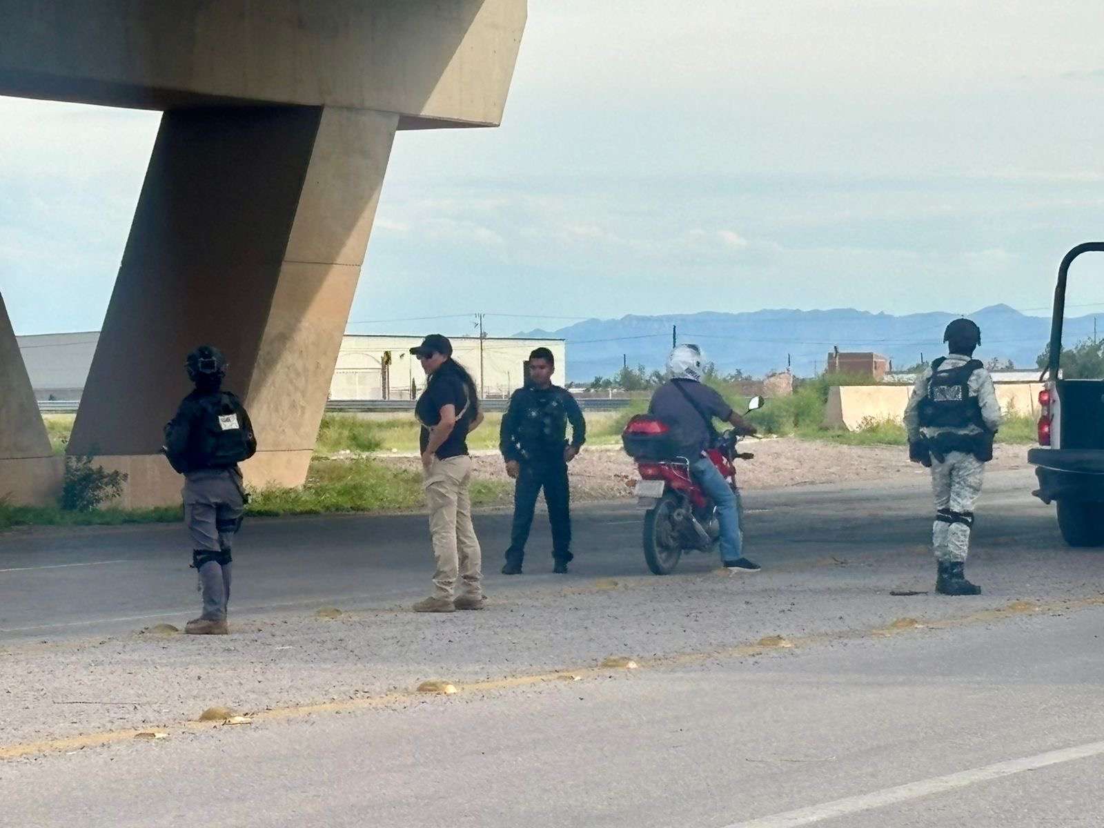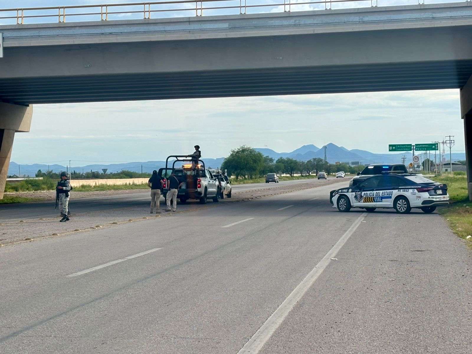 Chihuahua.- Elementos de la Guardia Nacional, de la Policía Municipal y de la Subsecretaría de Movilidad, implementaron un punto de revisión en la carretera Aldama-Chihuahua, a la altura del Libramiento Oriente.