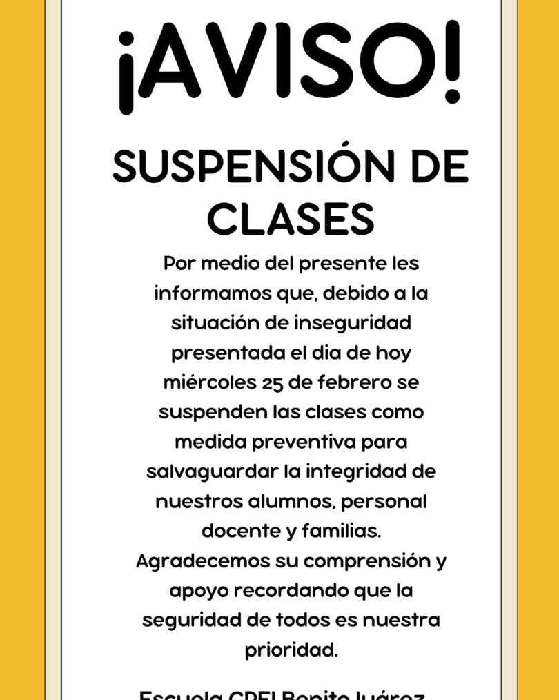 Fue mediante las redes sociales que se enviaron mensajes para avisar la suspensión de las clases en algunas escuelas, entre ellas el CREI ubicada en la comunidad de La Mesa, además de otras ubicadas en ciudad Aldama.