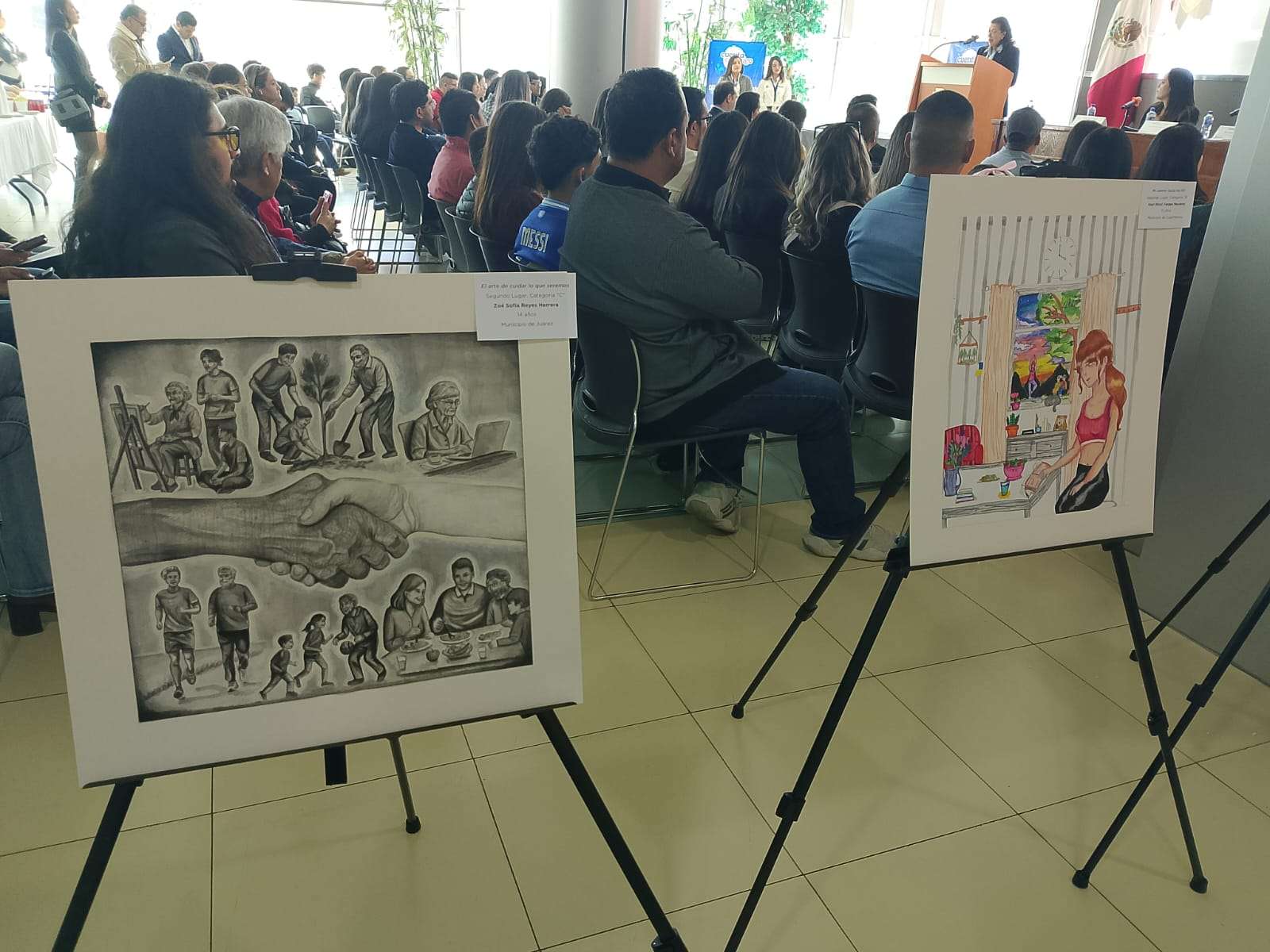 Las obras premiadas —dijo— reflejan ideas sobre alimentación equilibrada, actividad física, cuidado emocional, convivencia comunitaria y la importancia de entornos seguros e incluyentes. También transmitió el mensaje de la gobernadora María Eugenia Campos Galván, quien reiteró su compromiso con políticas que fomenten el autocuidado y el envejecimiento digno.