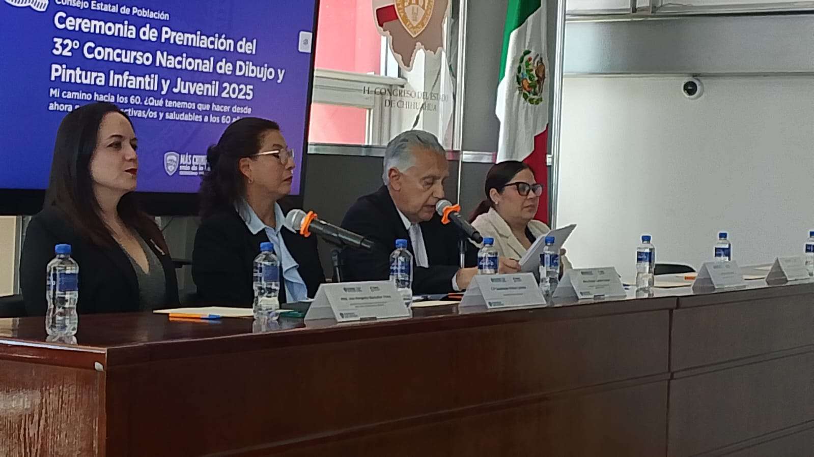 Chihuahua.- El Consejo Estatal de Población (Coespo) instaló este miércoles la sesión del pleno de su Junta de Gobierno y, en el mismo acto, llevó a cabo la ceremonia de premiación de la fase estatal del 32 Concurso Nacional de Dibujo y Pintura Infantil y Juvenil 2025, cuyo tema fue “Mi camino hacia los 60”.