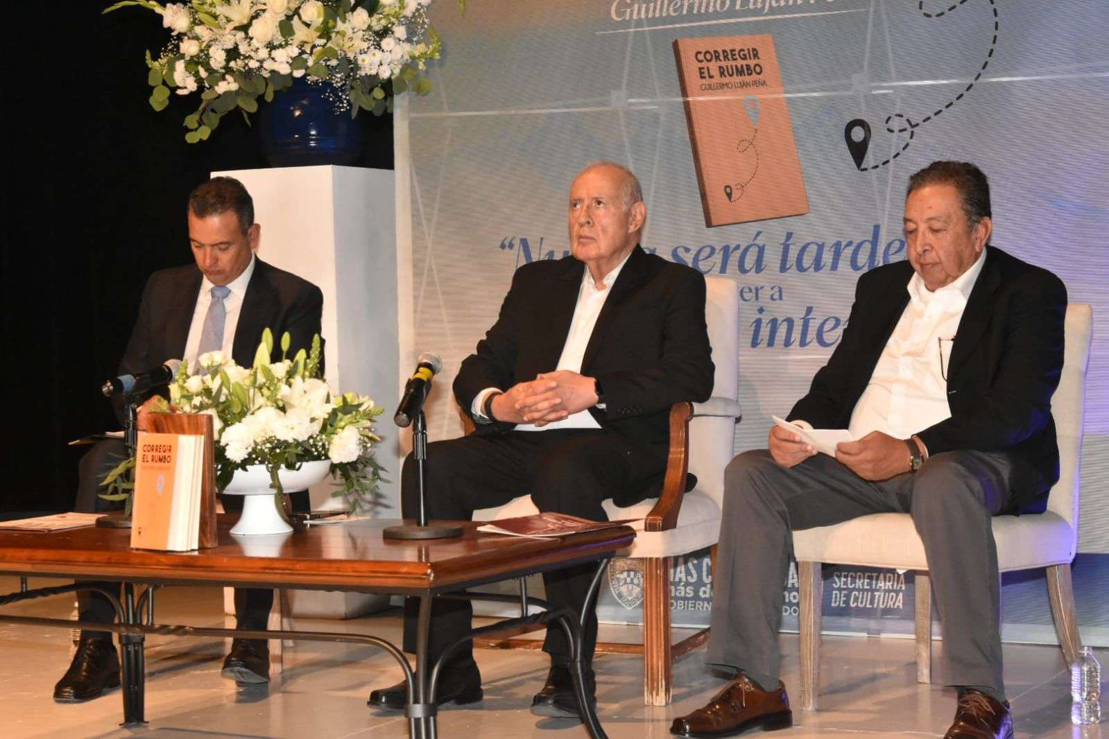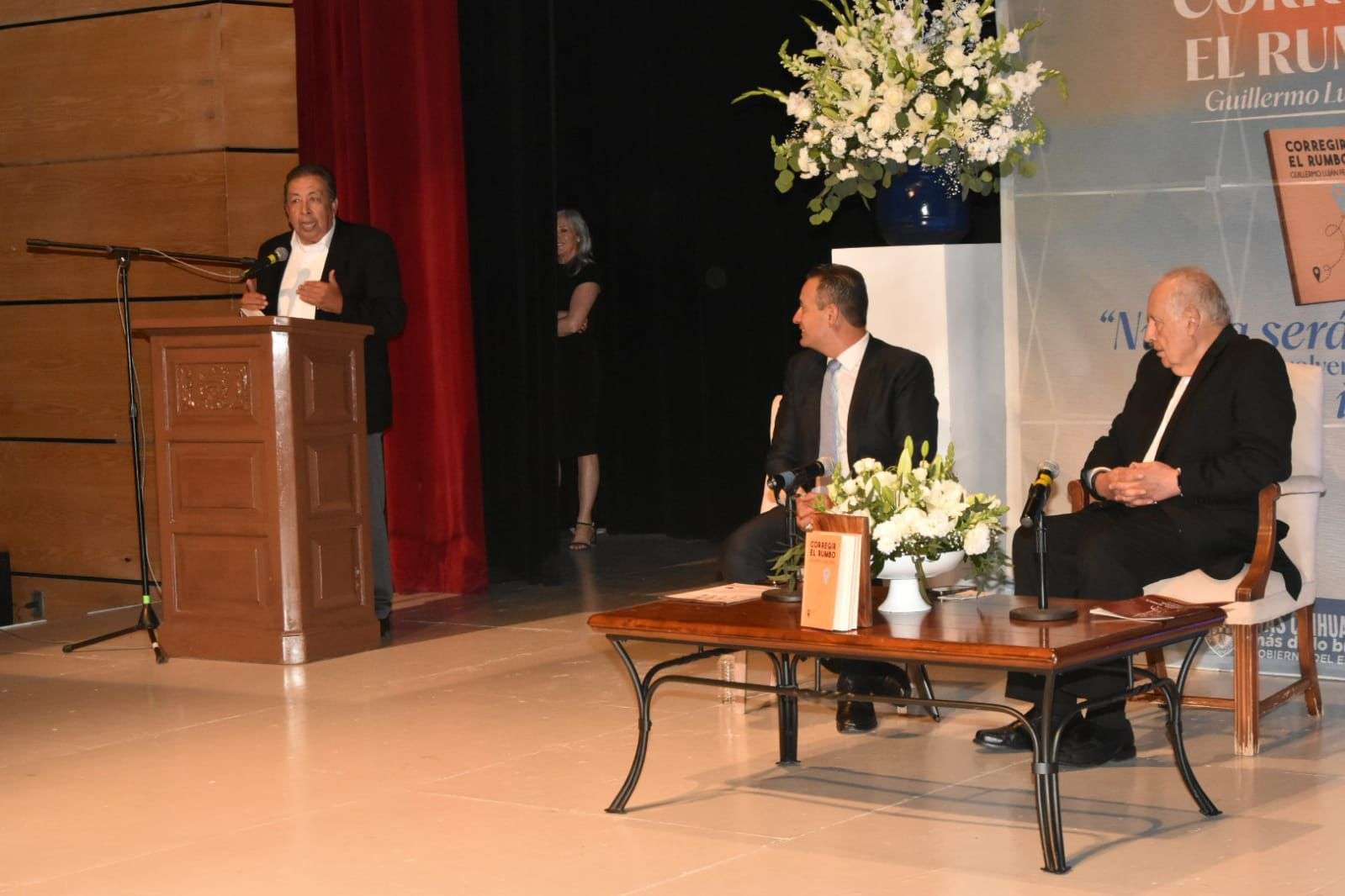 Chihuahua.- El Teatro de Cámara fue el escenario para la presentación del libro "Corregir el Rumbo" a cargo de su autor, Guillermo Luján Peña.
