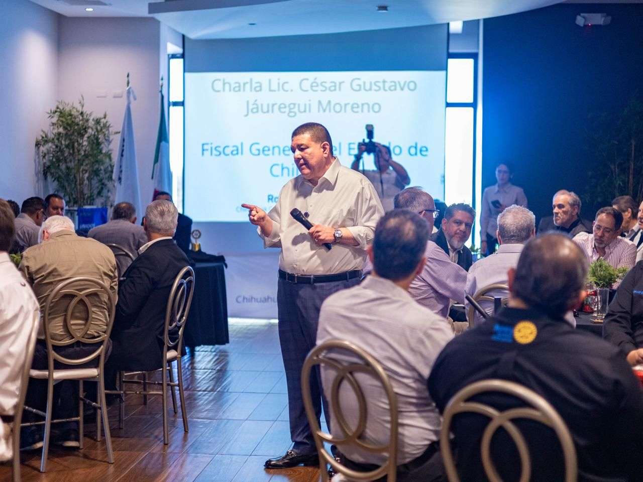 Chihuahua, Chih. — El Fiscal General del Estado, César Jáuregui Moreno, sostuvo este miércoles un encuentro con integrantes del Club Rotario Chihuahua, como parte de su estrategia de acercamiento con los distintos grupos organizados de la sociedad civil, a quienes presentó un panorama sobre la procuración de justicia en la entidad, así como los avances y logros alcanzados por la institución.