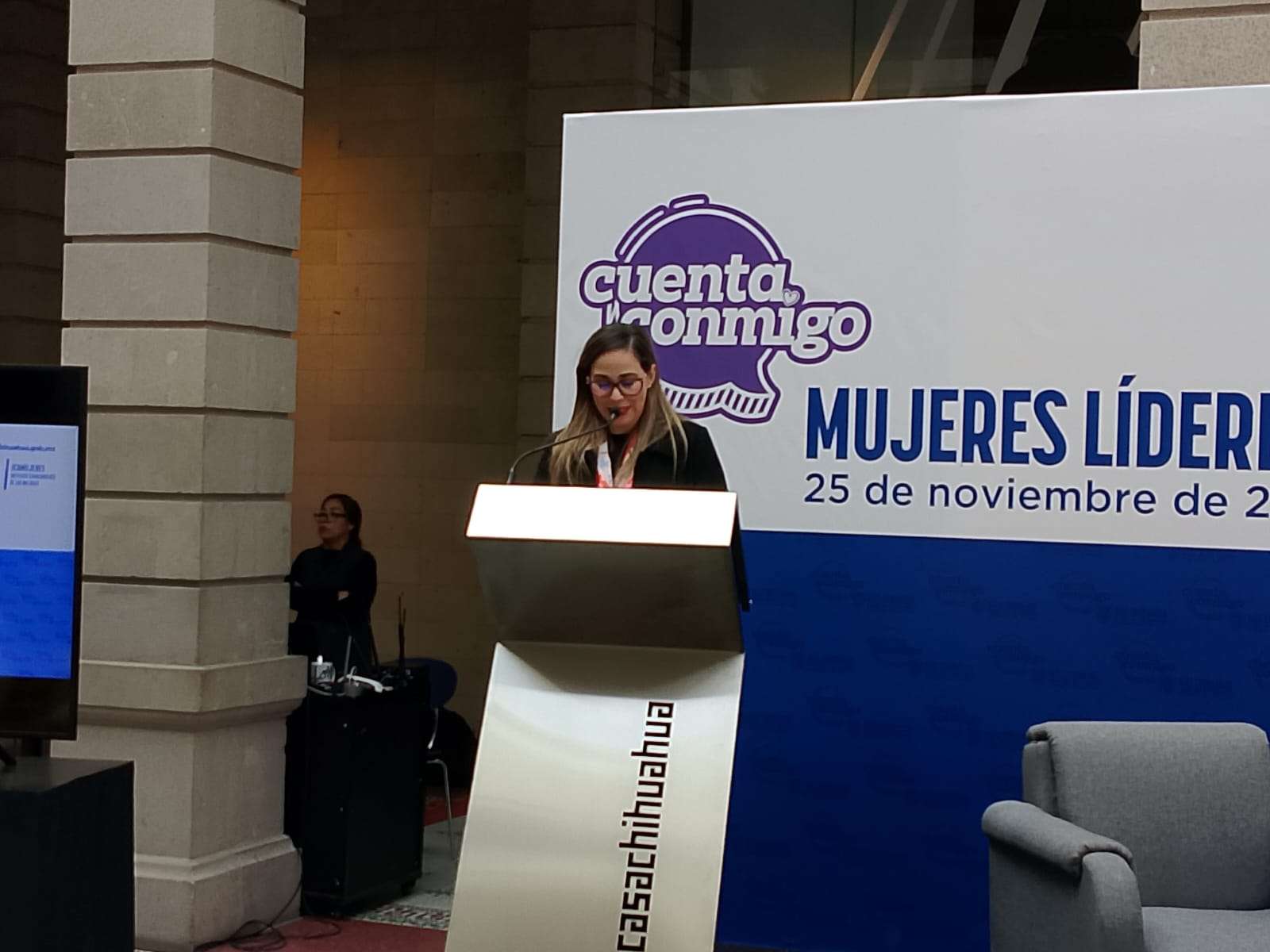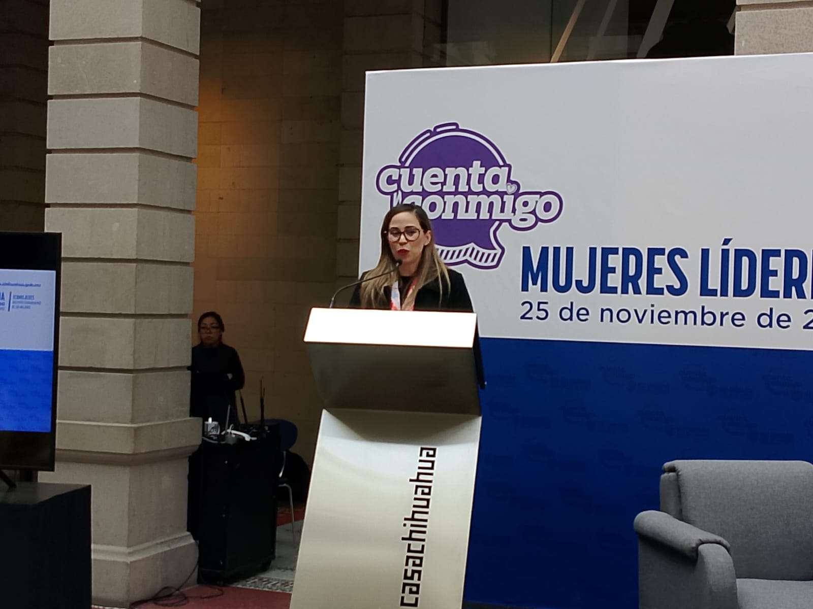 Chihuahua.- La directora del Instituto Chihuahuense de la Mujer, Raquel Bravo Osuna, inauguró este miércoles el foro “Mujeres líderes: Territorios libres de violencia”, un encuentro realizado en el marco del Día Internacional para la Eliminación de la Violencia contra las Mujeres, con la participación de funcionarias estatales y municipales.