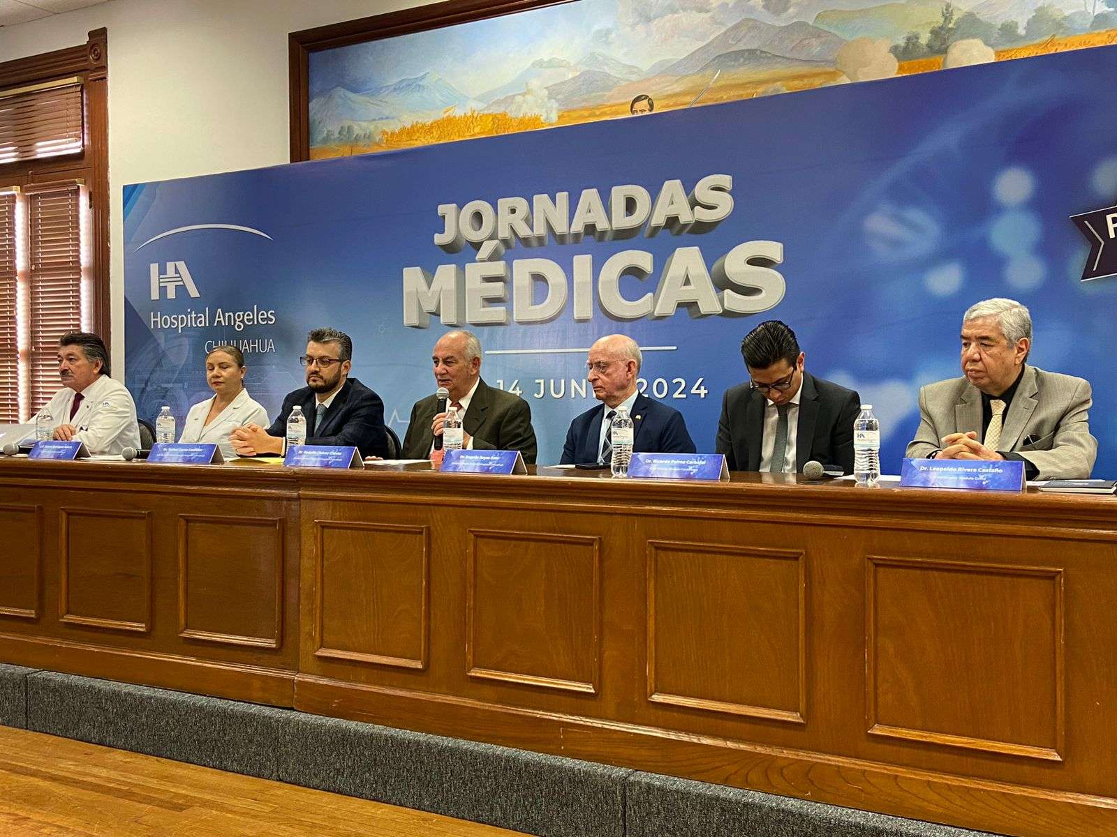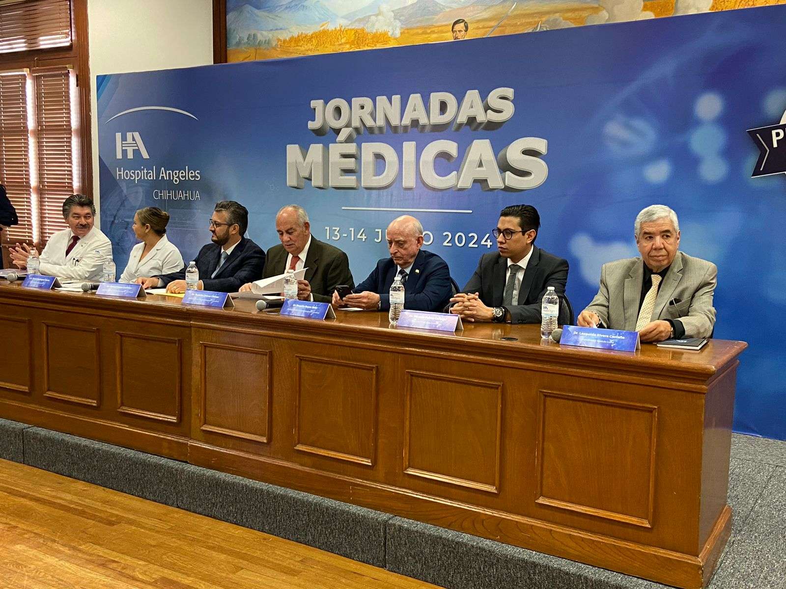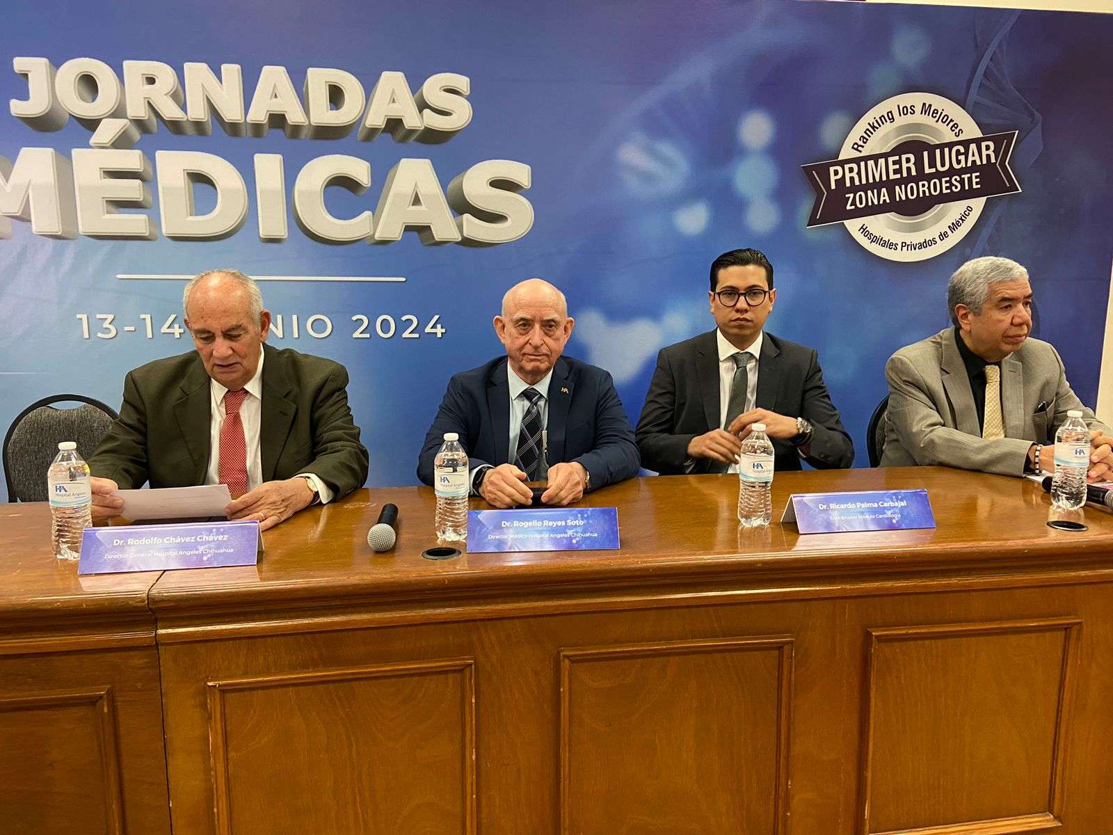 En el presídium estuvieron presentes Rodolfo Chávez Director General del Hospital Ángeles Chihuahua, Rogelio Reyes Director Médico del Hospital Ángeles Chihuahua, Rafael Garza Jefe de Enseñanza del Hospital Ángeles Chihuahua, Ricardo Palma Coordinador del Módulo de Cardiología, María Jannet Rodríguez Coordinadora del Módulo de Enfermería y Leopoldo Rivera Coordinador del Módulo de Covid.
