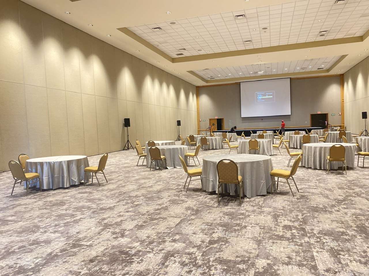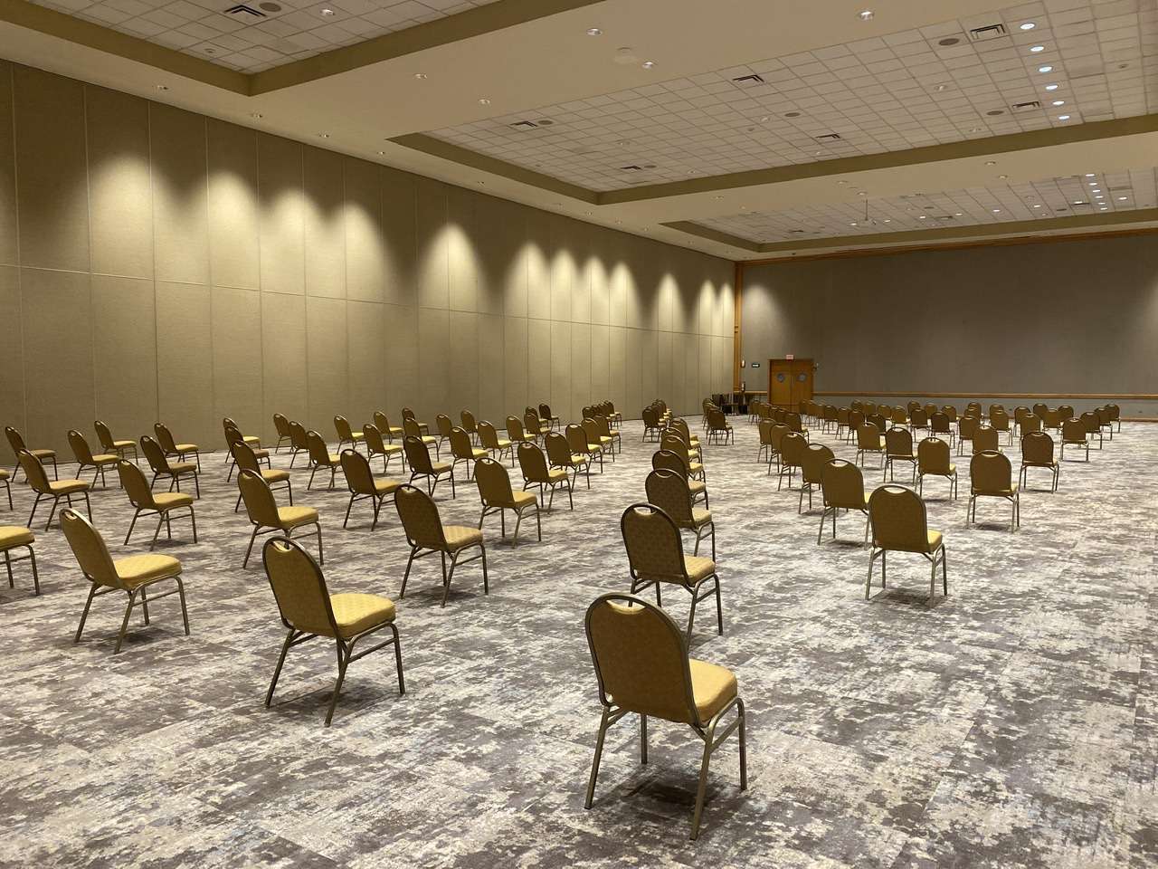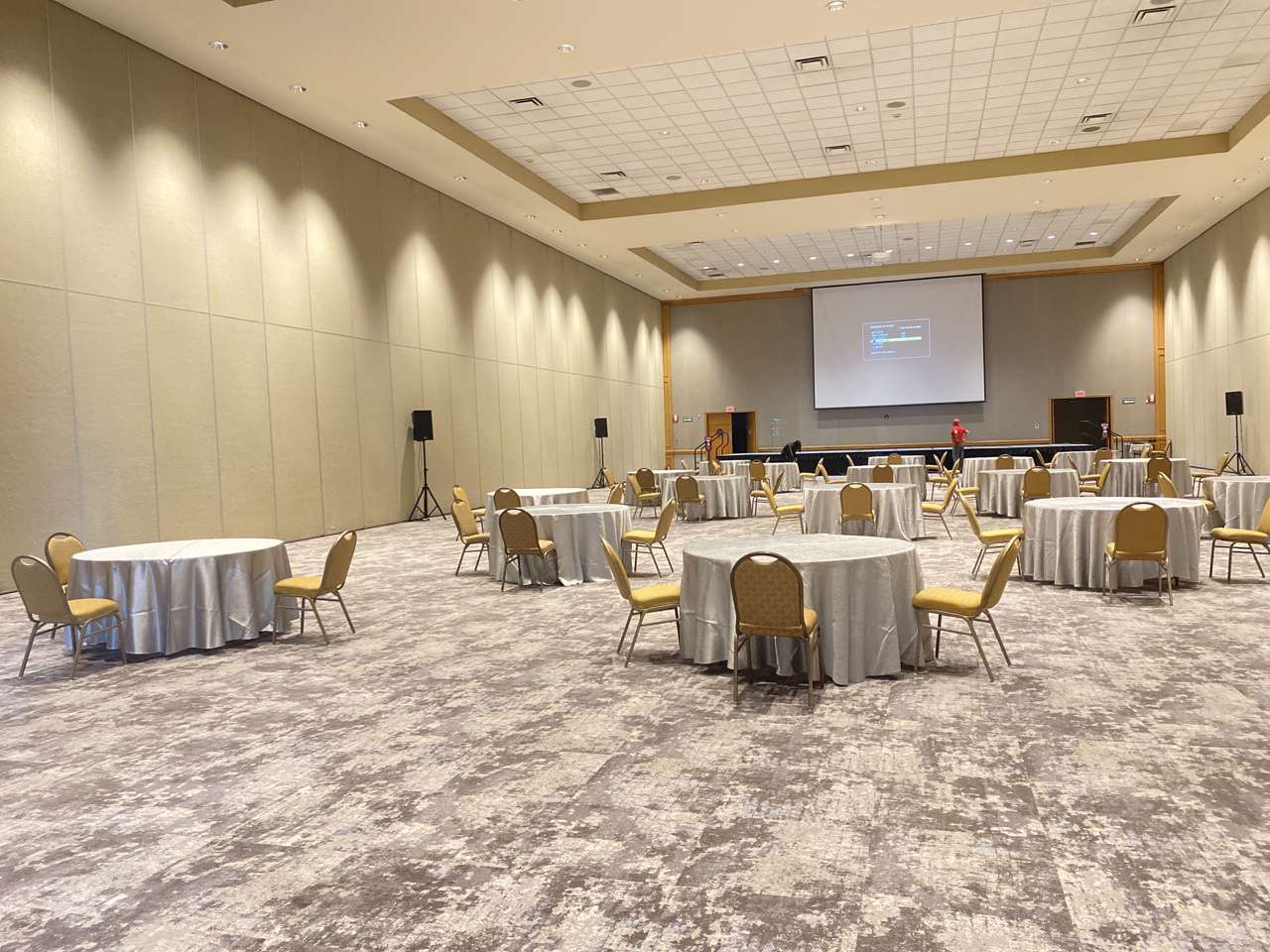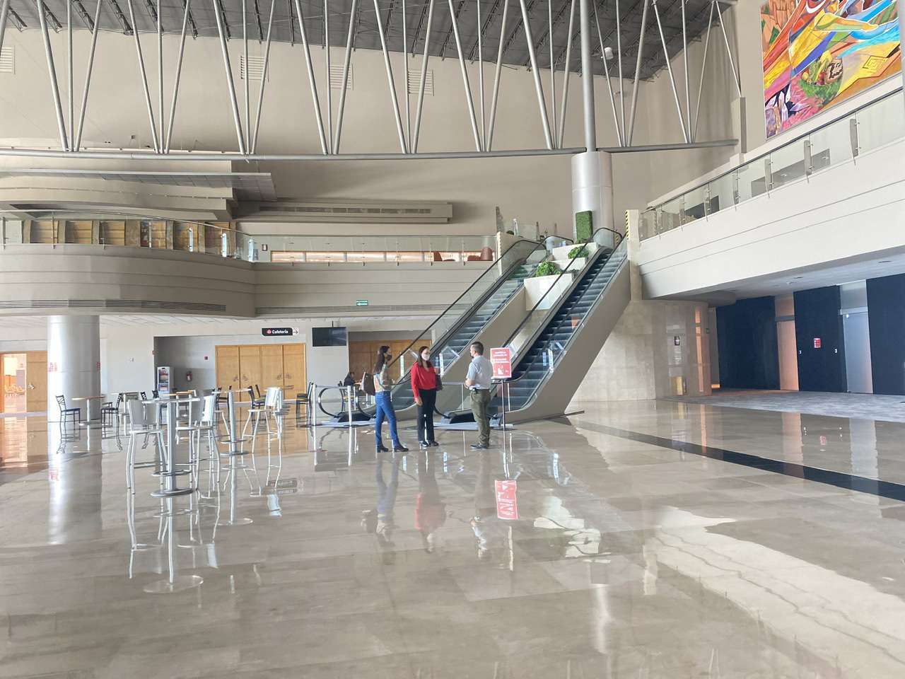 La sala magna del centro convenciones, se compone de 3 subdivisiones, o de área completa, por lo que su aforo se redujo a 400 personas, siendo éste originalmente de 2 mil 700 personas.