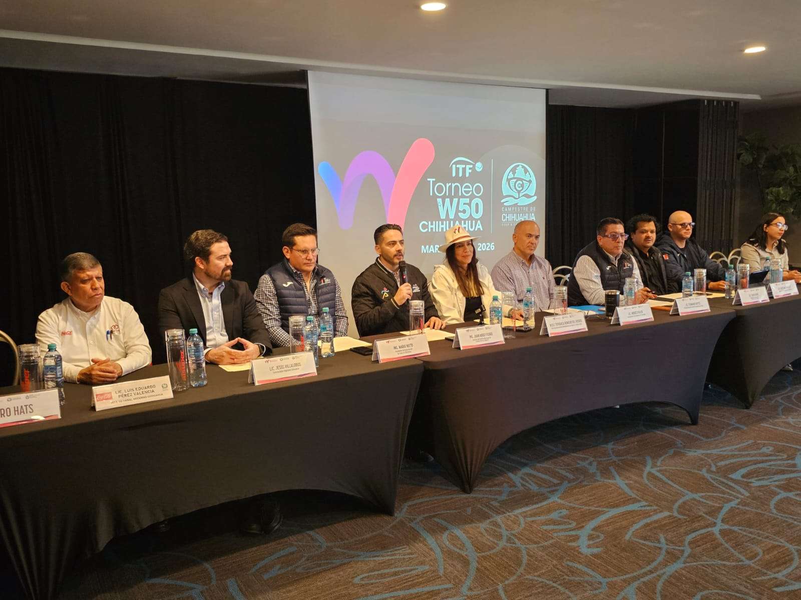 Chihuahua.- Autoridades deportivas presentaron el torneo internacional World Tennis Tour W50, que se realizará del 16 al 21 de marzo en las instalaciones del Club Campestre de Chihuahua, evento que reunirá a jugadoras de alto nivel provenientes de distintas partes del mundo.