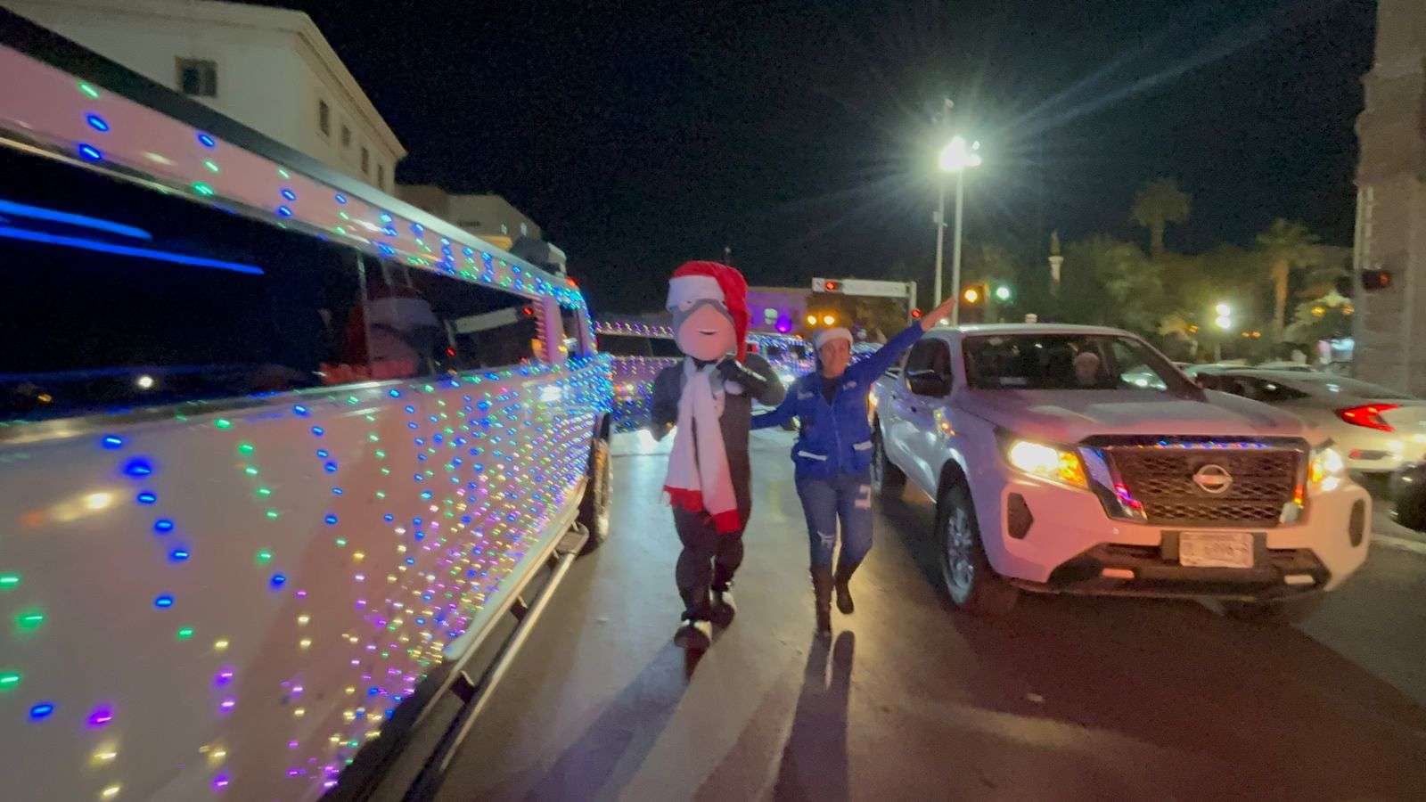 Chihuahua, Chih.- Este miércoles se llevó a cabo la caravana navideña de la Junta Municipal de Agua y Saneamiento (JMAS), encabezada por los cinco personajes conocidos como "Aguardianes", así como por patrocinadores de establecimientos restauranteros y de otros giros comerciales del Centro de la ciudad. El desfile estuvo conformado por más de 50 vehículos, informó el director ejecutivo de la JMAS, Alan Falomir.