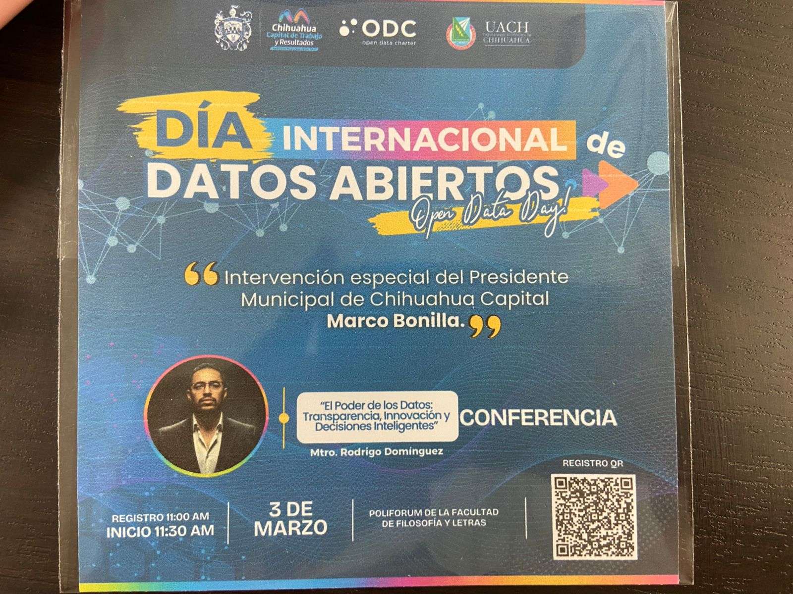 Chihuahua.- Amelia Martinez coordinadora de transparencia y gobierno abierto, realizó la invitación al Open Data Day, en el marco del Día Internacional de Datos Abiertos que se realizará en el Poliforum de la Facultad de Filosofía y Letras de la Uach.
